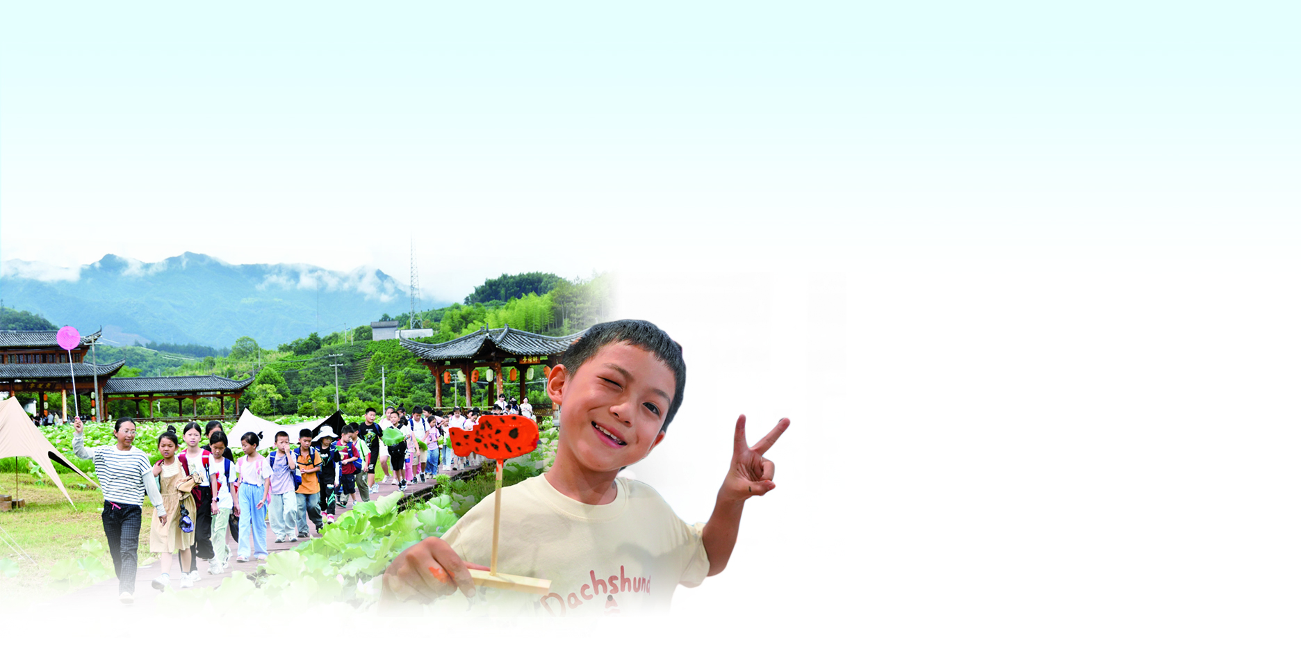 团武义县委则首次将公益暑托班课堂从室内延伸到广阔的乡村天地,在帮助孩子增长见闻的同时,带动乡村发展。昨天一早,几辆旅游大巴缓缓开进武义县新宅镇岭上文化园,160余名小学生在那里体验了丰富多彩的“红领巾助力乡村振兴”暑托班夏令营活动。民俗家居馆、山村老报馆、乡村书画馆……岭上文化园里琳琅满目的展品让孩子们目不暇接;投喂梅花鹿、徒手捉泥鳅、水上“大作战”……处处留下了他们的欢声笑语。