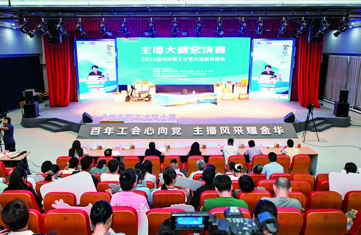 记者 李建林 文/摄 8月8日,由市总工会、市职工文体协会、市新闻传媒中心等举办的金华市职工才艺大赛系列活动之主播大赛决赛在工人文化宫举行。 前期历经初赛、复赛近3个月的层层比拼,12位佼佼者从众多选手中脱颖而出。 本次决赛设有三大比拼环节。首先是“金小工直播间”之文旅宣推。随后进行的第二环节则是更具烟火气的“金小工直播间”之模拟带货环节。选手们化身带货主播,为金华本土的20家优秀企业的特色商品进行吆喝。在最后的自我展示环节,选手们通过个人擅长的才艺展示,获得现场30位大众评审的支持。