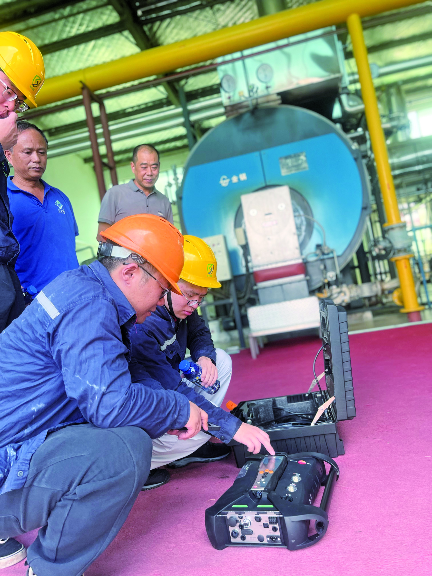 市特检院承压三部部长、锅炉检验师何靖介绍,锅炉作为一种能源消耗占比较高的耗能设备,提高能效,有利于提升能源利用效率,降低污染物排放水平,实现节能和环保双赢。对锅炉进行能效测试就像给设备做“体检”,能准确发现能耗过高的症结所在。经检测,该台锅炉现场工况测试热效率为93.1%,基本满足锅炉节能环保技术规程。“建议企业通过清灰除垢、优化燃烧、降低冷凝器回水温度、降低排烟温度等措施,进一步提高锅炉热效率。”何靖说。