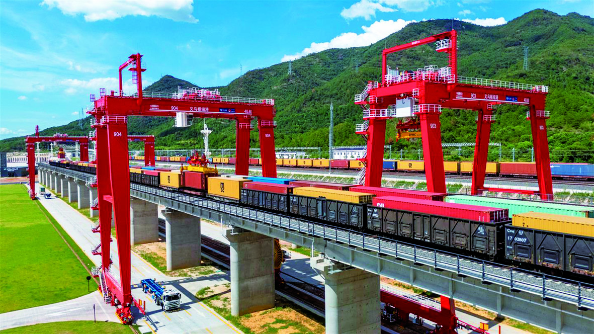 记者 胡肖飞 文/摄 8月13日,义乌(苏溪)国际枢纽港作业场站内,海铁联运班列在进行装箱作业,准备驶向宁波舟山港。 义乌(苏溪)国际枢纽港自6月27日开港运营以来,多举措推动义乌至宁波舟山港进出口海铁联运业务提质增效。截至7月31日,枢纽港铁路运输量突破100列,已形成常态化、规模化的运行模式,推动实现“第六港区”与宁波舟山港之间、陆上和海上丝绸之路的无缝对接。