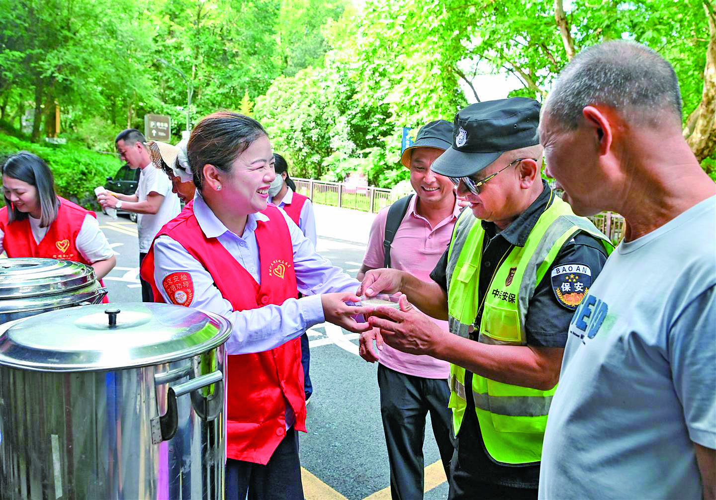 记者 李建林 文/摄 连日来,市交投公交集团营运二公司在双龙风景旅游区的公交站点,为户外工作者发放藿香正气水等防暑药物以及凉茶等,提醒大家在高温天气下工作注意防暑降温,确保自身的安全与健康。