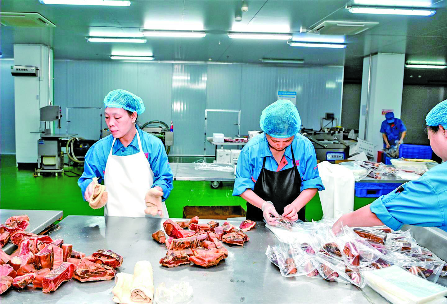 记者 李建林 文/摄 连日来,金华火腿有限公司包装车间,工人们麻利地将火腿真空包装,贴上标签,打包装箱。 据了解,如今金华火腿产销受季节因素影响越来越小。这主要得益于电商平台、直播带货、跨境贸易等多元化的销售渠道和更加丰富的衍生产品。
