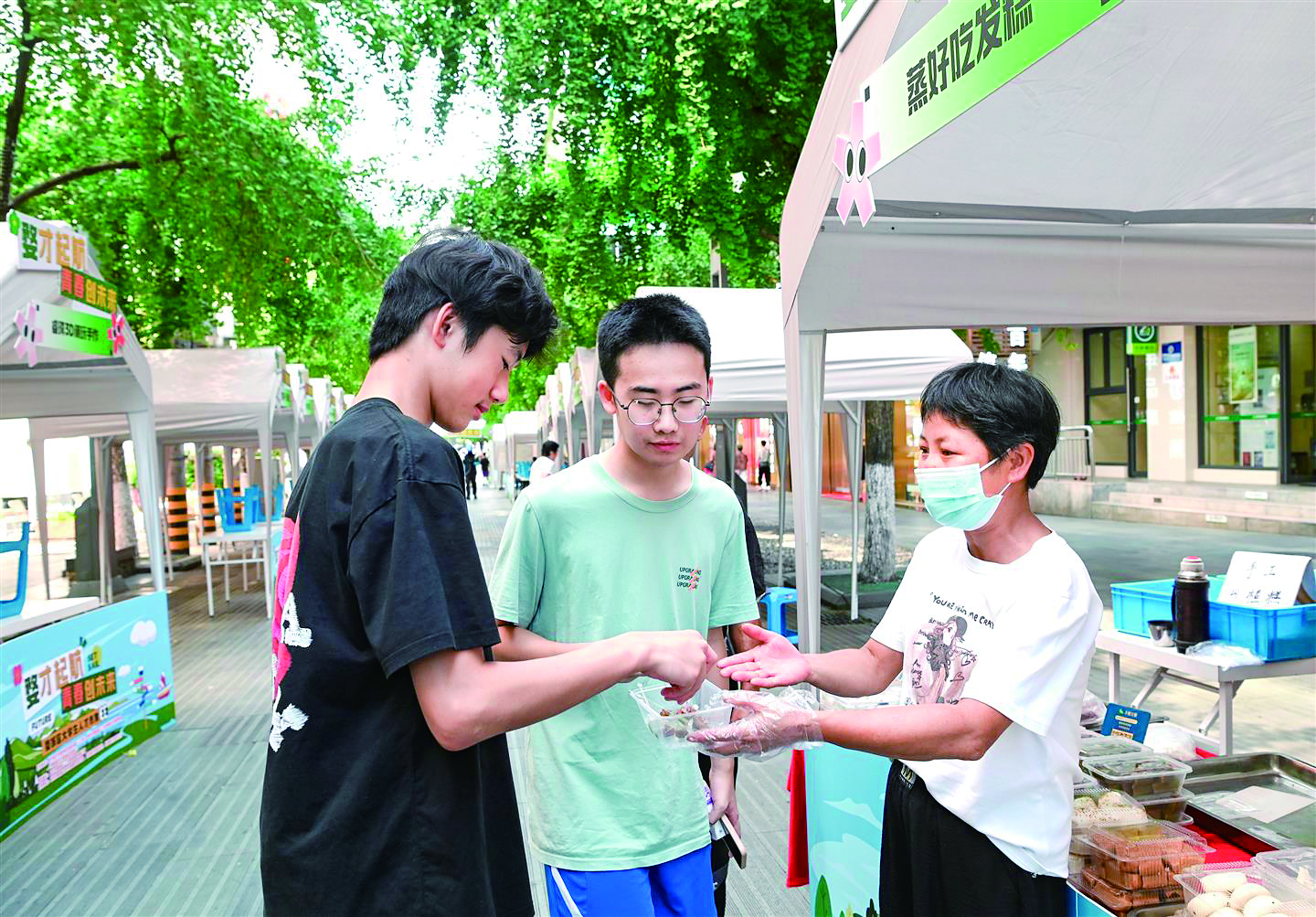 记者 李建林 文/摄 近日,在市区西市街,婺城区举行以“婺才起航 青春创未来”为主题的大学生人才市集。现场汇聚婺式糕点、药膳小吃等20种特色青创产品,吸引众多大学生驻足。准大学生、在校生凭录取通知书、学生证,还可现场领取文创礼包、消费大礼包等专属福利。