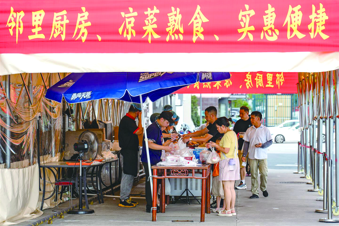 记者 楼冀阳 文/摄 8月20日,婺城区一家饭店门口的外摆餐食摊位上,冷菜、熟食、蒸物等,各类美食一应俱全,摊主还开启网络直播,吸引许多市民前来选购。 自今年3月18日起,全省启动大力提振和扩大消费专项行动,支持大型商贸企业利用自有场地进行外摆促销。近期以来,市区各大酒店的外摆餐食摊位越来越多,既有金华熏鱼、萝卜肉圆、金华扣肉等本地佳肴,也有凤爪、红烧狮子头、蒜泥小龙虾等特色小吃,更贴心准备了包子、馒头等面点,便利了周边市民,也为酒店吸引了客流。