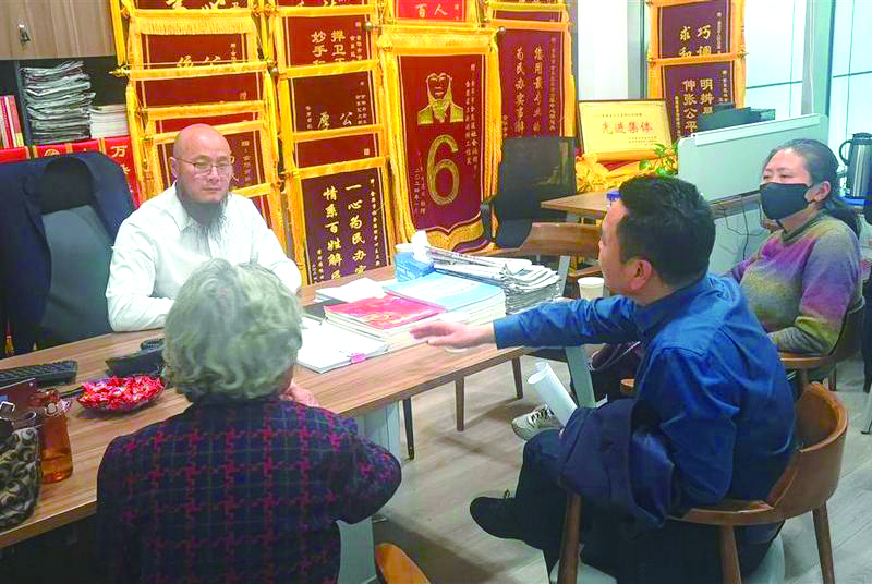 2023年,一桩牵涉四方、缠斗6年、几度拳脚相向的房产纠纷案交到王卫新手中。厚厚的10份判决书,他看了两天才厘清脉络。经过6个月的艰难协调,四方最终握手言和,一起送来锦旗致谢,有一方还发出邀请:“等会我去买菜,中午都到我家吃饭。”这戏剧性的和解,让王卫新心头暖流涌动。