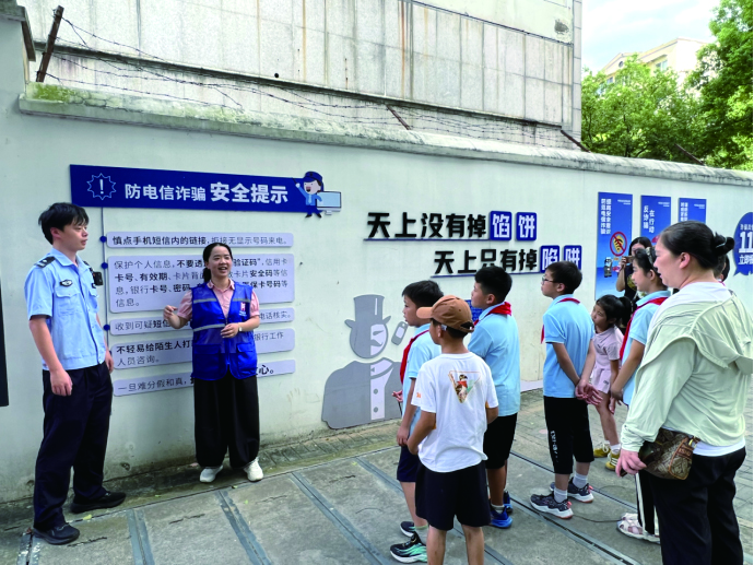 记者 俞萍 文/摄 近日,金华开发区江南街道金龙湾社区党委携手南苑小学开展“平安有我 一路童行”暑期实践活动,通过知识普及和互动实践,将平安理念植入青少年内心。 社区平安员通过案例讲解,向学生普及诈骗、邪教的常见手法及识别技巧,帮助青少年树立科学精神,自觉抵制邪教侵蚀。学生们拿上宣传册,带上反诈扇,“沉浸式”体验社区平安员的工作,与网格员一同走进沿街店面,向商家们普及反诈、防火、反邪等平安知识。 此次活动是金龙湾社区党委深化“警格+网格+家校”协同治理的又一实践,进一步凝聚了平安建设合力,形成“教育一个孩子,带动一个家庭,影响整个社区”的良性循环。