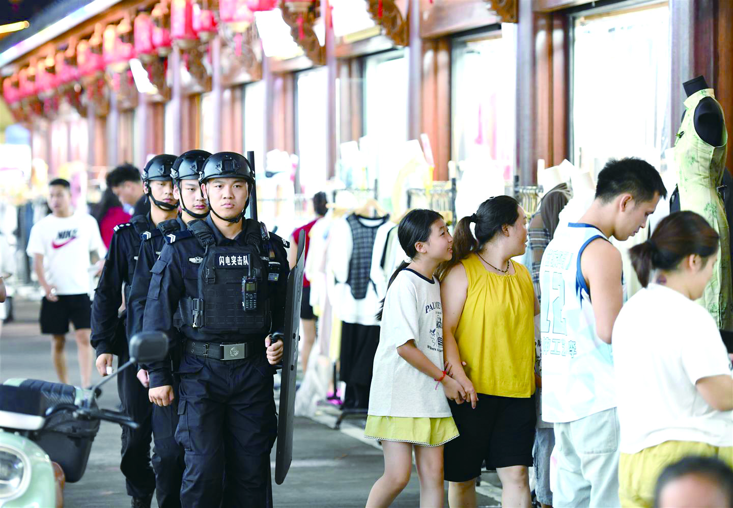 记者 于兴勇 文/摄 图为永康市公安局巡特警大队闪电突击队在汇集了560余家商铺及流动餐饮摊位的夏溪夜市巡逻。 永康市公安局积极探索护航夜经济新路径、硬举措,提高夜间见警率和管事率,让群众安全感触手可及。