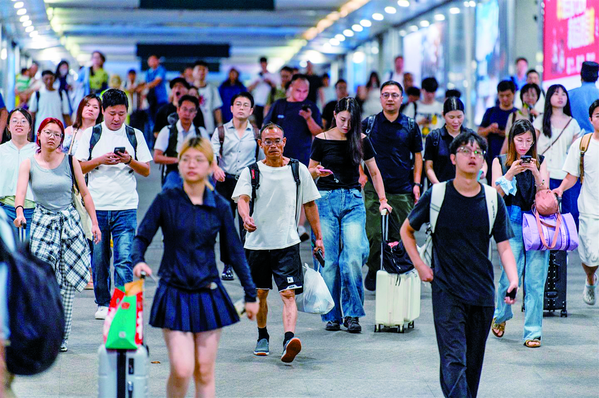 记者 胡肖飞 文/摄 8月25日,旅客在铁路金华站出口处返程出站。暑期即将结束,连日来,铁路金华站迎来一波波暑运返程客流高峰。