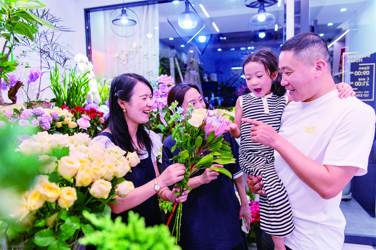 记者 胡肖飞 文/摄 8月27日晚,顾客在市区一家花店选购花卉,喜迎七夕。 临近七夕佳节,人们纷纷来到花店选购鲜花,欢度传统节日。