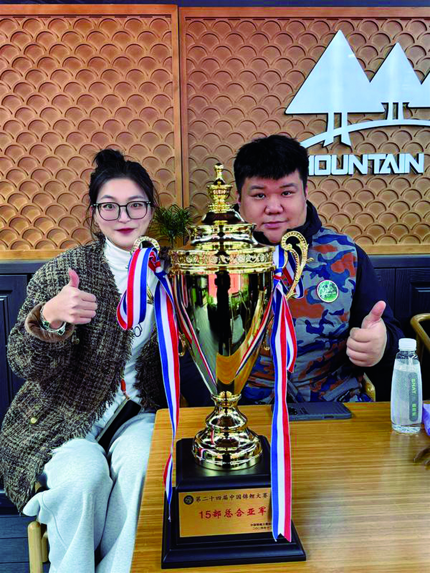 在养殖基地一角,数十座奖杯和厚厚一叠证书展示着他们多年来的荣誉。2016年起,李琳夫妇每年带着自家锦鲤参加全国各类大赛。“参赛是对我们养殖成果的检验。”李琳说。“去年去广东参赛,奖杯太大,我们的行李箱东西多装不下,他居然说不要了,被我怼回去了。”妻子余璐滢“揭短”。