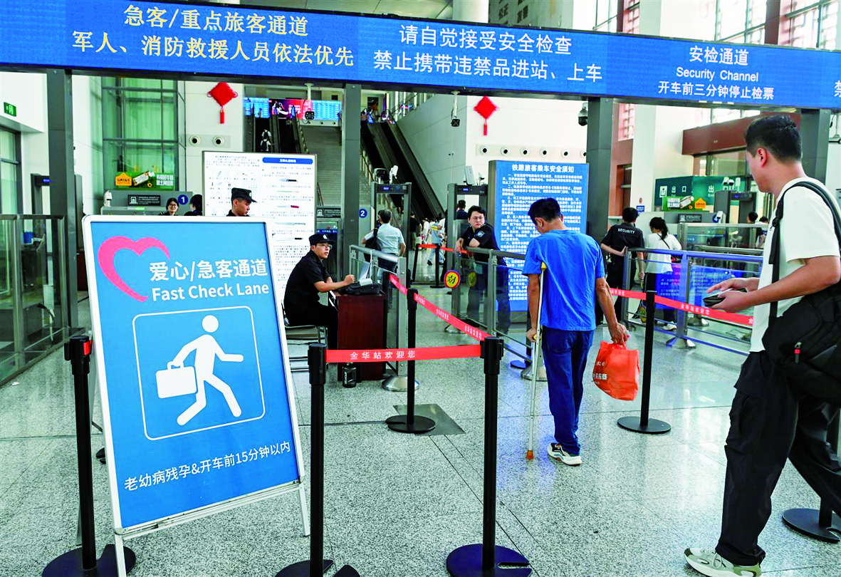 9月2日,铁路金华站进站口设立“爱心/急客通道”,方便老、幼、病、残、孕及开车前15分钟以内到达的旅客快速进站乘车。据了解,因堵车、看错时间等原因,“掐点”抵达铁路金华站的旅客可通过此通道快速进站乘车。