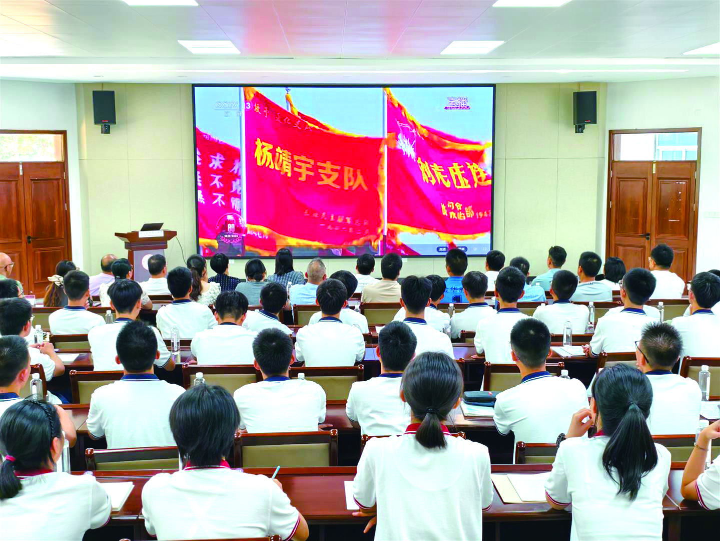 金华市宾虹高级中学全体师生齐聚一堂,观看纪念中国人民抗日战争暨世界反法西斯战争胜利80周年大会直播。目睹徒步方队步伐铿锵、装备阵列铁流滚滚、空中梯队呼啸苍穹,大家心潮澎湃,掌声不断,青春面庞映照强国光芒,抗战精神在此刻薪火相传。