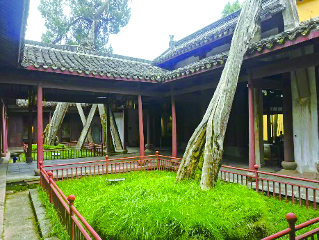 今天我们走进侍王府二堂后院这座庭院,比较醒目的是它至今保留基本完好的《封魏王诏》与《州官题名记》两块碑刻,就在西面的天井廊下,为玻璃罩子罩着。在西厢房内,被一堵砖墙隔断的《骑牛图诗刻》,就很少有人知道了。