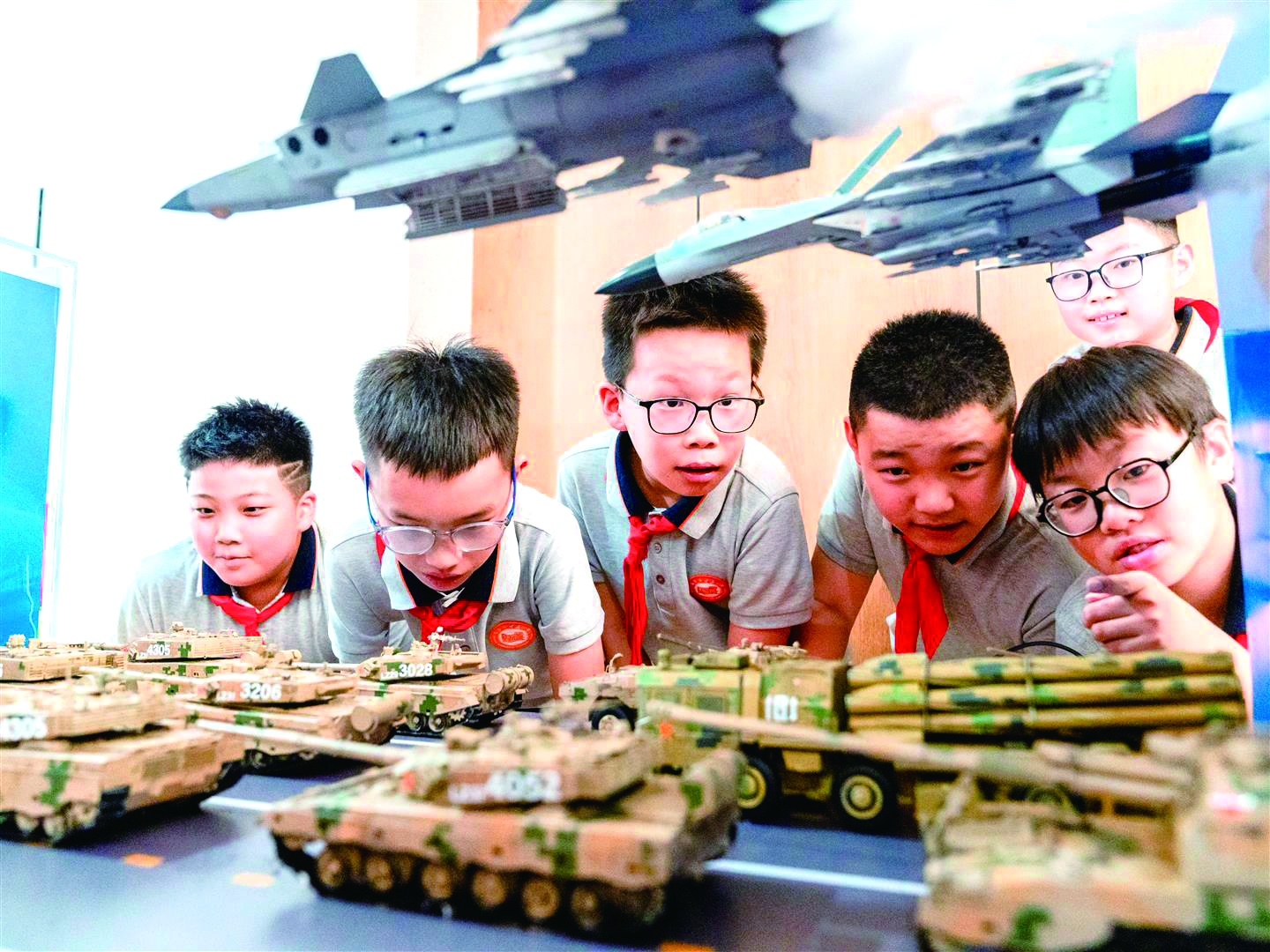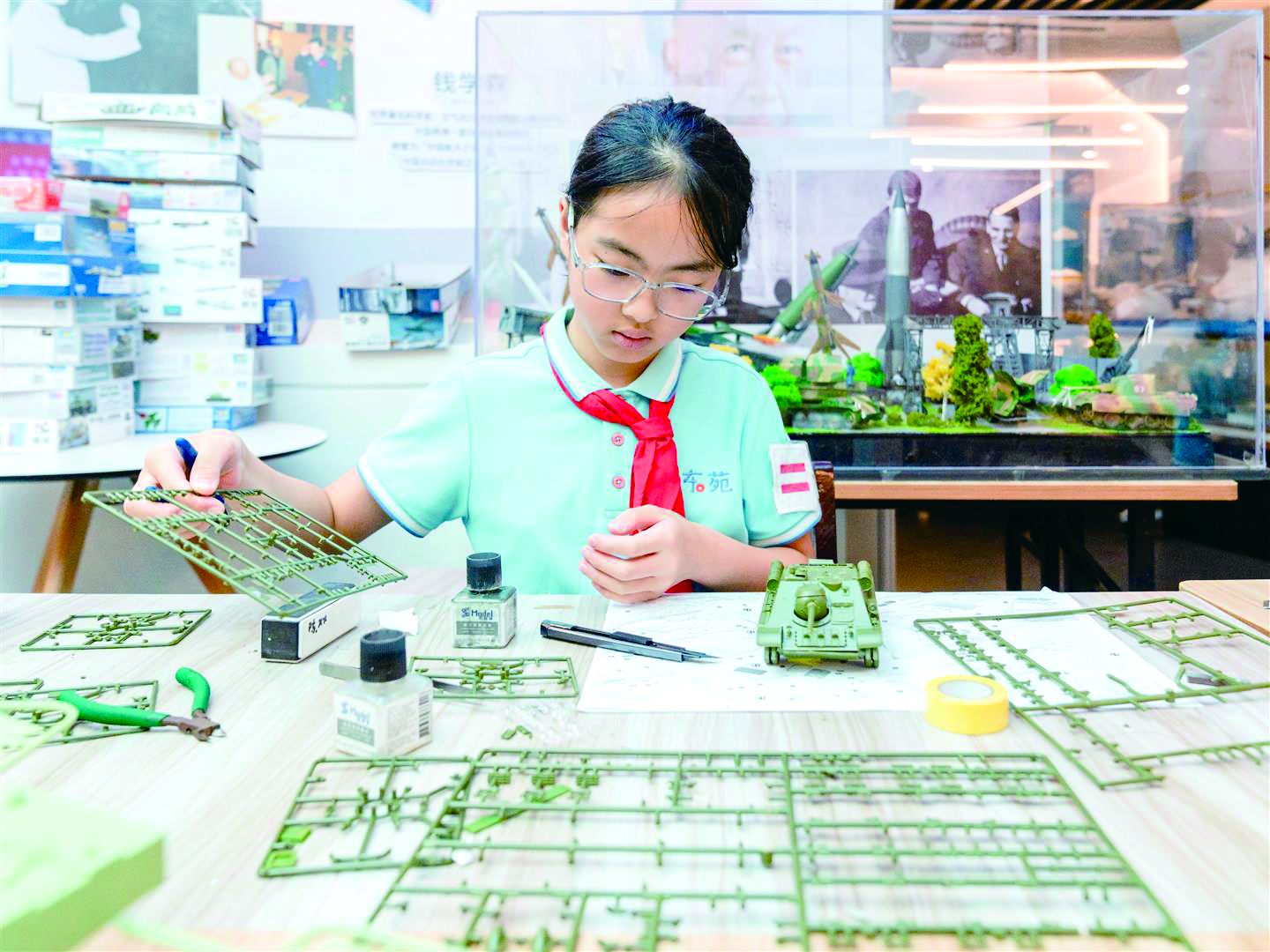 “学校航模队从3月份就开始收集整理我国军队历年装备模型,10余名孩子利用暑假时间按年份进行了细分,最终在秋季开学第一天完成布展,成为校园里特别的‘历史课堂’。”吴震表示,通过查阅资料、制作模型,学生们更直观地感受到了国家从积贫积弱到日益强大的变化,用航模来讲抗战故事也更加形象生动。