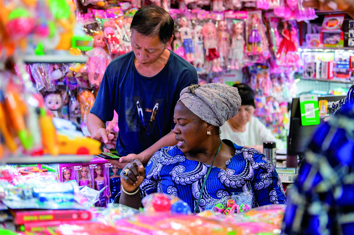记者 胡肖飞 文/摄 昨日,在义乌国际商贸城内,国内外游客和客商正在选购小商品。 虽然目前暑期已过,游客仍源源不断前来市场游玩、采购,玩具、礼品、体育用品等小商品交易兴旺,“世界超市”购物热潮不减。
