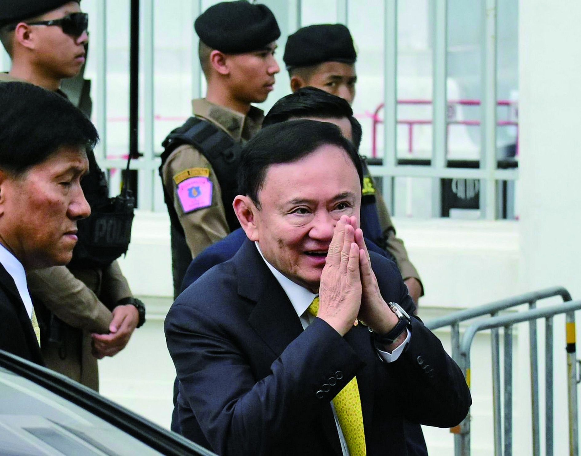 9月9日,泰国前总理他信(前)抵达位于曼谷的最高法院。 据泰国媒体报道,泰国最高法院9日裁定,前总理他信在警察总医院服刑的执行程序不合法,须重新服刑1年。新华社发