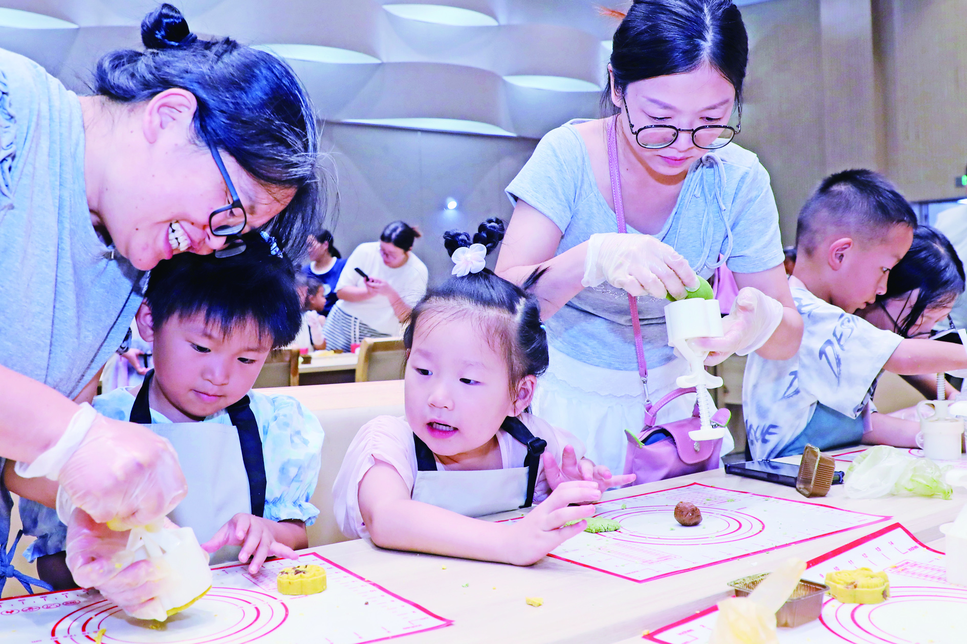 通讯员 陈强 文/摄 9月6日,磐安县江南药镇养生博览馆开展了一场手工制作药膳月饼亲子体验活动,家长与孩子共同参与其中。活动现场,孩子们在家长协助下将黄精、石斛等道地药材搭配芝麻、薏米等食材,用雕花模具压制成形,制作出美味的特色月饼,让孩子们在动手实践中感受中医药文化的独特魅力,传承“药食同源”的传统智慧。