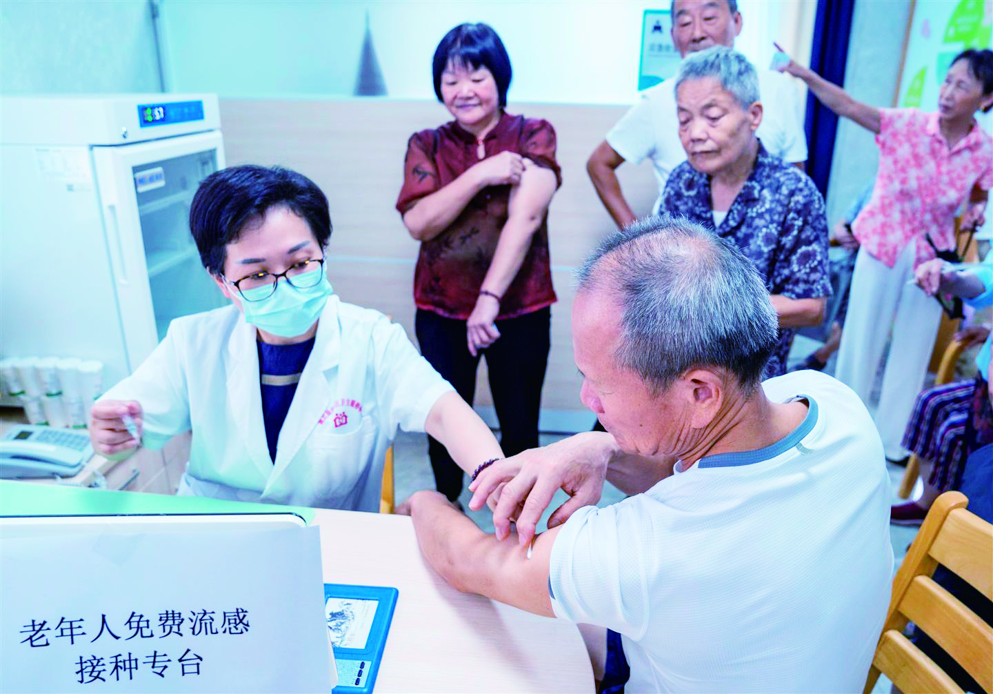 记者 傅俊 文/摄 连日来,60周岁及以上老年人免费接种流感疫苗工作在全市各街道社区卫生服务中心、乡镇卫生院有序推进。 9月10日上午9时许,在市区城北街道卫生服务中心的疫苗接种现场,前来接种流感疫苗的老年人络绎不绝。截至目前,该卫生服务中心已为老年人免费接种流感疫苗1010剂次。