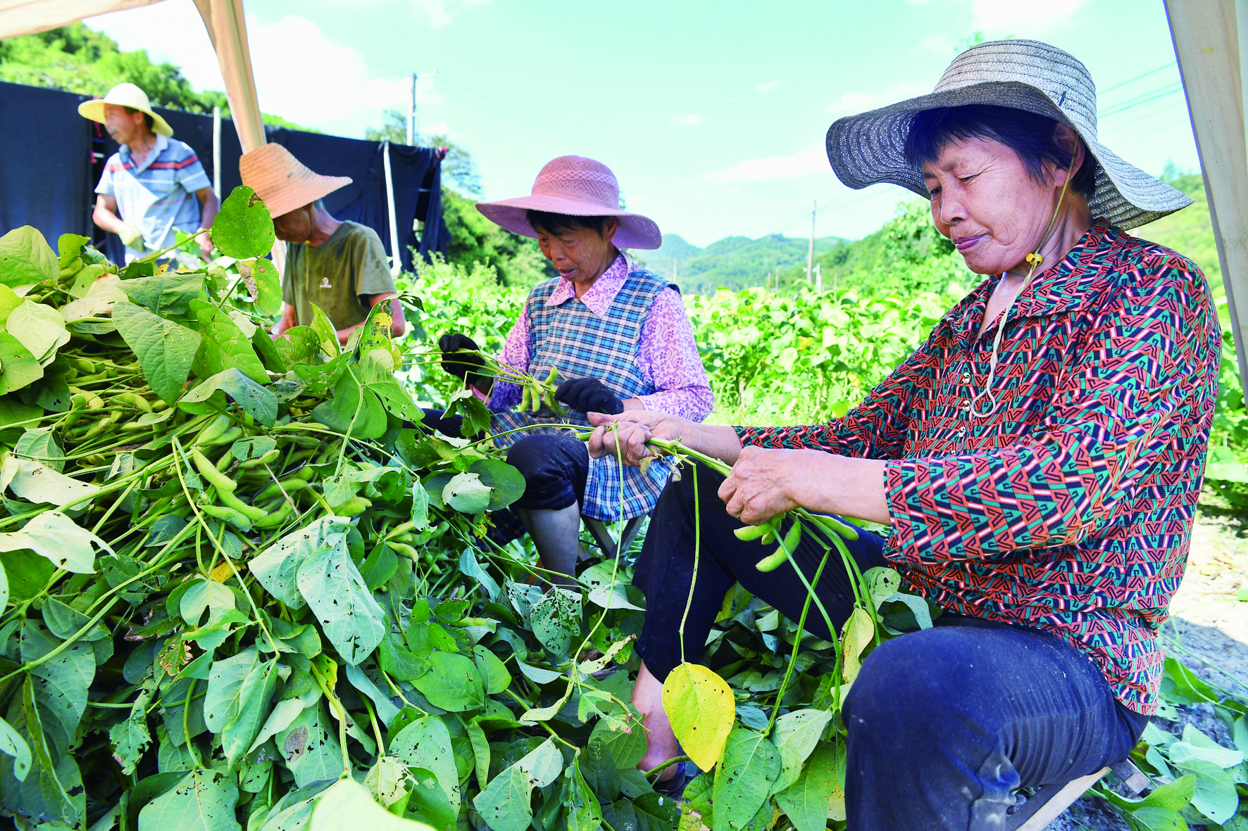 记者 时宽兵 文/摄 连日来,武义县新宅镇后林畈村的村民们忙着采收毛豆。 当地依托高山气候和优质水源,今年种植了4000多亩毛豆,平均亩产750公斤。随着采收季到来,这些毛豆经采摘、分拣、装袋后,供应各地市场。