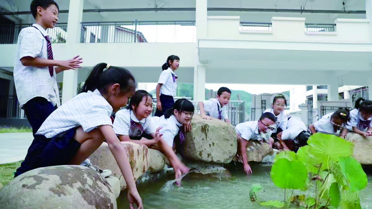 走进安文小学,校园里鹏展亭前的尚雅水生池甚是热闹,水葫芦漂浮在清澈的水面,水底下鲤鱼、小虾等水生动物成群结队。安文小学自2021年搬迁新址后,依托磐安县“生物多样性友好城市”建设契机,积极创建“生物多样性友好学校”。短短4年时间,安文小学校园里,虫鸣鸟啼、鸢飞鱼跃,花草树木和生物种类竟达130多种,还成为金华市首批生物多样性特色体验地。