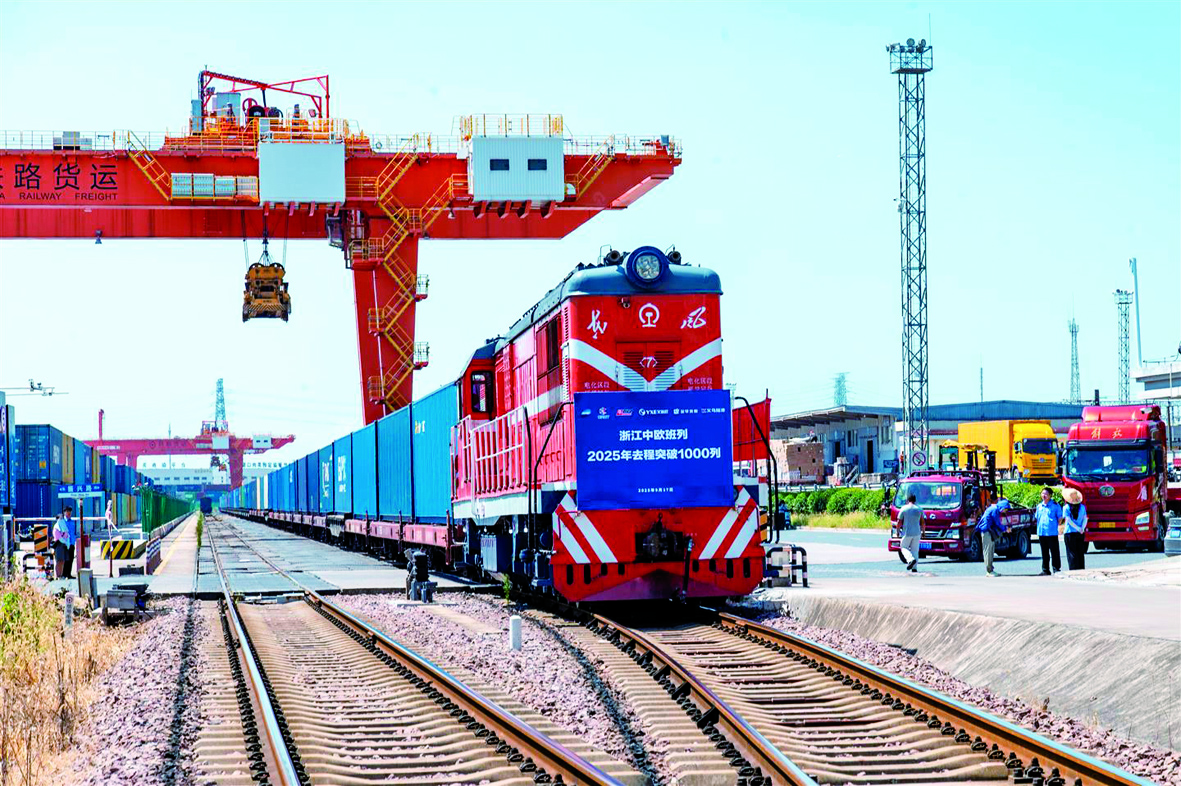 记者 胡肖飞 文/摄 昨日,两列满载日用百货、电器元件、新能源设备等出口货物的中欧班列先后从义乌西站驶出,标志着2025年浙江中欧班列(含中亚方向)累计开行(去程)突破1000列。 据悉,今年浙江中欧班列开行情况持续向好,较去年突破1000列(去程)整整提前了1个月。