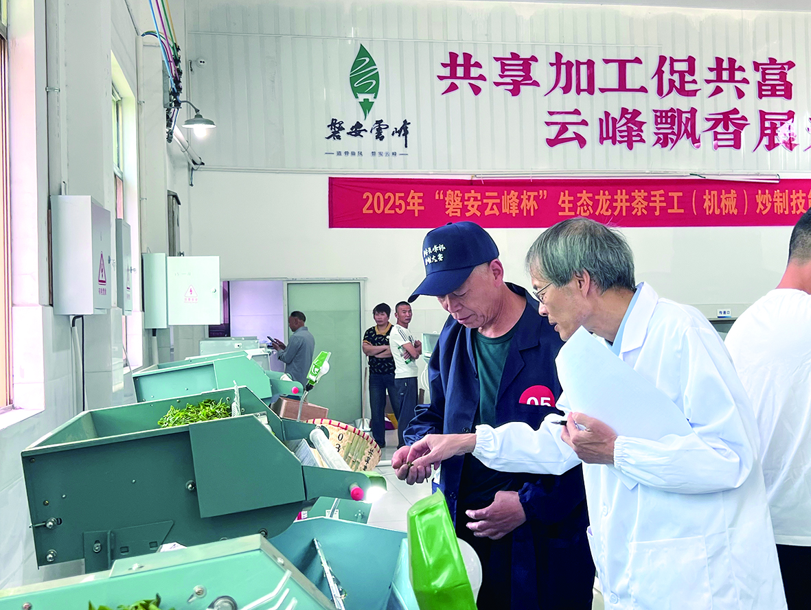 今年4月2日,尖山镇农发公司和浙江金盘茶业有限公司联合创建了磐安生态龙井茶共享炒制中心(简称共享炒制中心)。该中心配备全自动数控生产线,通过“共享加工”模式,不仅能为当地及周边乡镇村民加工茶叶、增加收入提供便利,更是通过磐安生态龙井茶的品牌价值,为当地茶产业发展提供强大后盾。