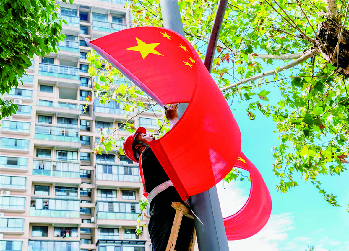记者 韩东儒 文/摄 随着国庆节临近,节日氛围日益浓郁。市区主要道路两旁的路灯杆,工作人员正进行国旗悬挂,每一面国旗都按照规范要求悬挂,整齐划一。市区商业中心各大商场也纷纷加入到国庆氛围营造的行列中。此次全方位营造国庆氛围,不仅展示了我市的城市活力与魅力,更激发了市民的爱国热情。