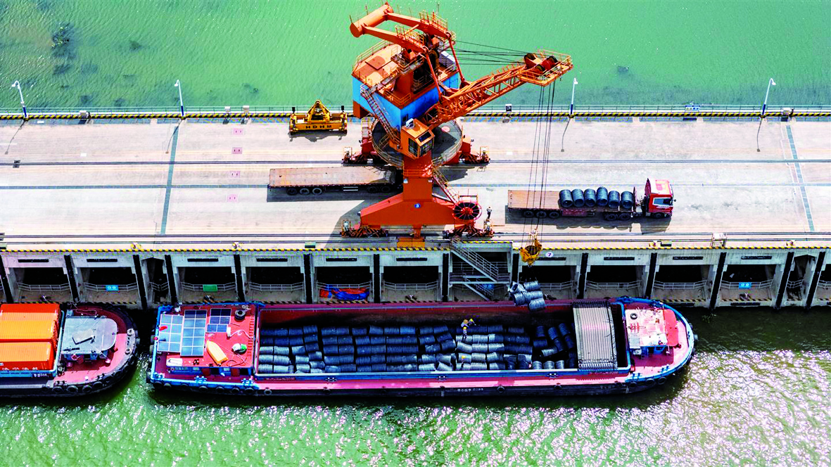 记者 胡肖飞 文/摄 9月25日,金华港婺城港区罗洋作业区,多艘货轮靠岸装卸作业,呈现一派忙碌景象。 去年8月开港运营以来,金华港婺城港区罗洋作业区已成为浙江中西部地区货物水路中转的核心节点之一。今年1—7月,金华内河港口吞吐量完成262.8万吨,同比增长37%,增速排名全省第一。