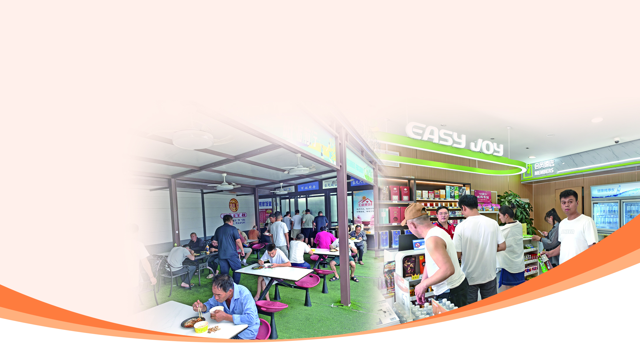“这里原本是一间垃圾房,后经改造成为易捷便利店。”便利店负责人说。如今,这个120平方米的空间已焕然一新,成为集成多种服务的工会驿站。