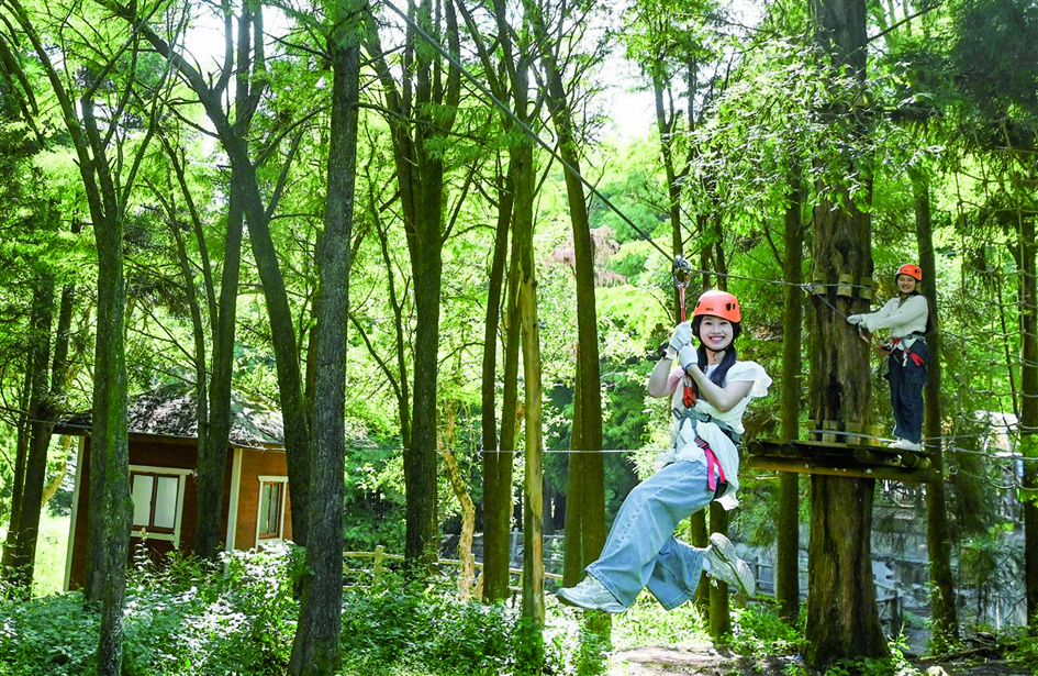 记者 李建林 文/摄 挑战溜滑索、树上蹦床、射箭……9月26日,金华双龙风景旅游区的一家森林露营基地策划推出了一系列惊险刺激的户外运动项目,吸引市民前往体验。 国庆期间,我市一些景区将推出丰富多彩的户外运动活动,涵盖登山、骑行、马拉松、篮球等项目。