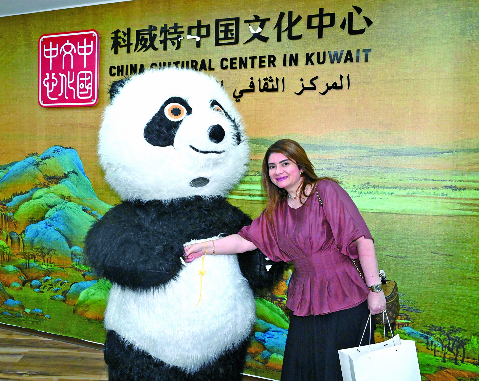10月12日,在科威特哈瓦利省,一名女子在科威特中国文化中心与熊猫人偶互动合影。 科威特中国文化中心12日晚在科威特哈瓦利省举行揭牌仪式,开始正式运营。中国驻科威特大使馆临时代办刘翔、科威特国家文化、艺术与文学委员会助理秘书长阿努德公主、科威特重要社团组织代表、多国驻科使节及各界对华友好人士等百余人出席仪式。 新华社发