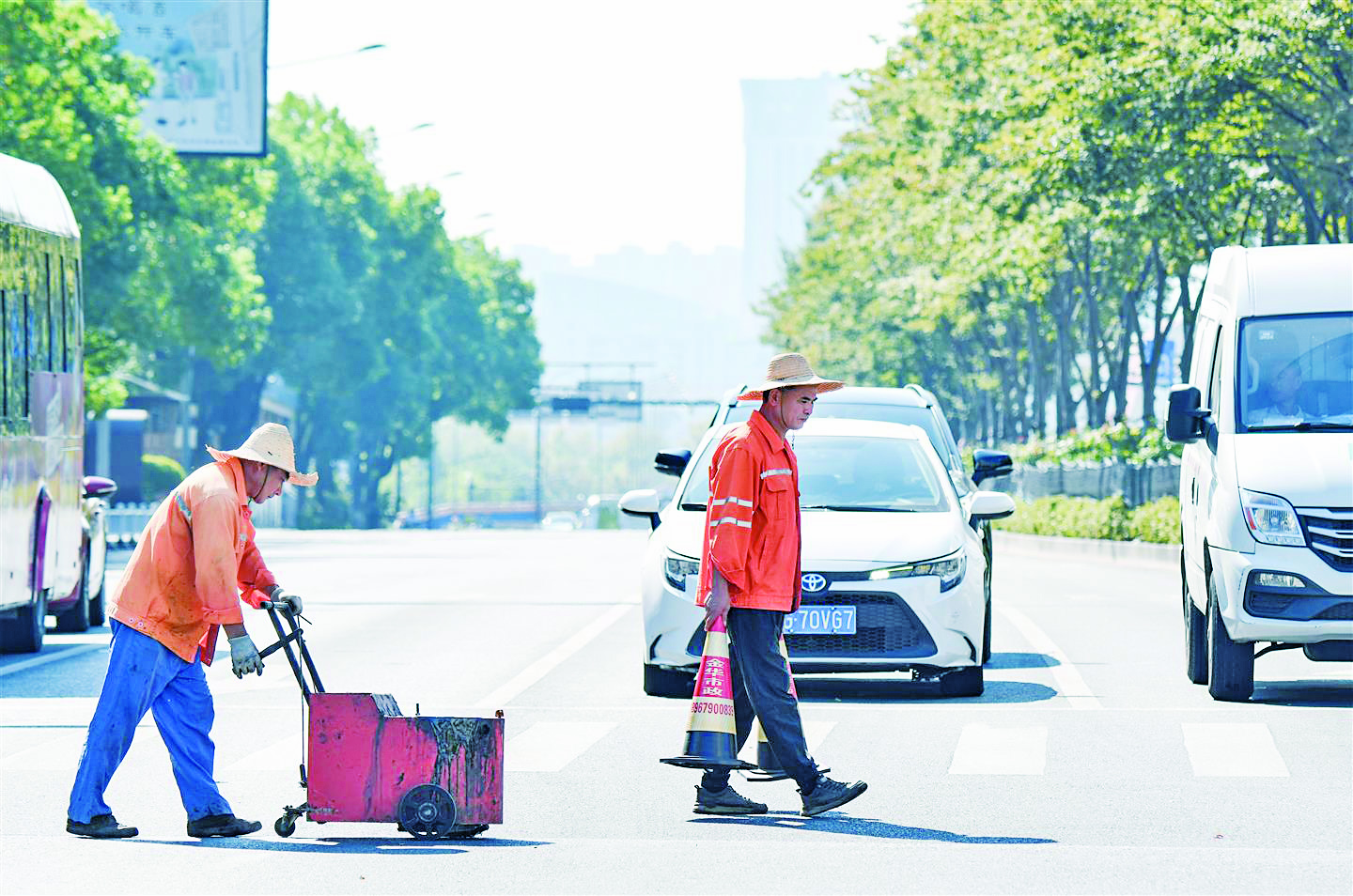 记者 李建林 文/摄 10月10日,在市区双龙北街上,施工人员正对路面出现的龟裂进行沥青灌缝修补。 连日来,市政部门利用秋季少雨的有利条件,集中力量对大街小巷、主次干道开展市政道路设施“小病害”拉网式修补工作,确保市政道路设施稳定运行,保障市民的出行安全。