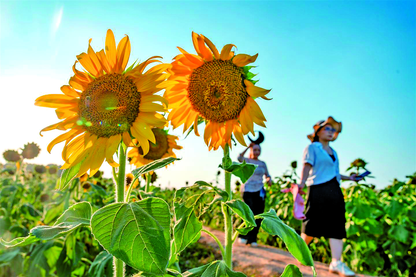 记者 傅俊 文/摄 这些天,义乌植物园化身金色童话世界,20万株连绵的向日葵在风中摇曳。金黄色的花瓣环绕着花盘,形成层层叠叠的金色波浪,构成了一幅动人的自然油画。 连日来,不少市民游客驱车前来打卡,漫步于花海,年轻的女孩们纷纷驻足,拍照留影;家长带着孩子一起享受大自然的芬芳,成为一道独特的风景线。 据了解,此片向日葵花海共53亩,位于植物园西城北路P2停车场对面。为了让游客更好地体验向日葵花海的魅力,园区特别设置了多处打卡点和步道,方便游客们从不同角度欣赏这片金色海洋。