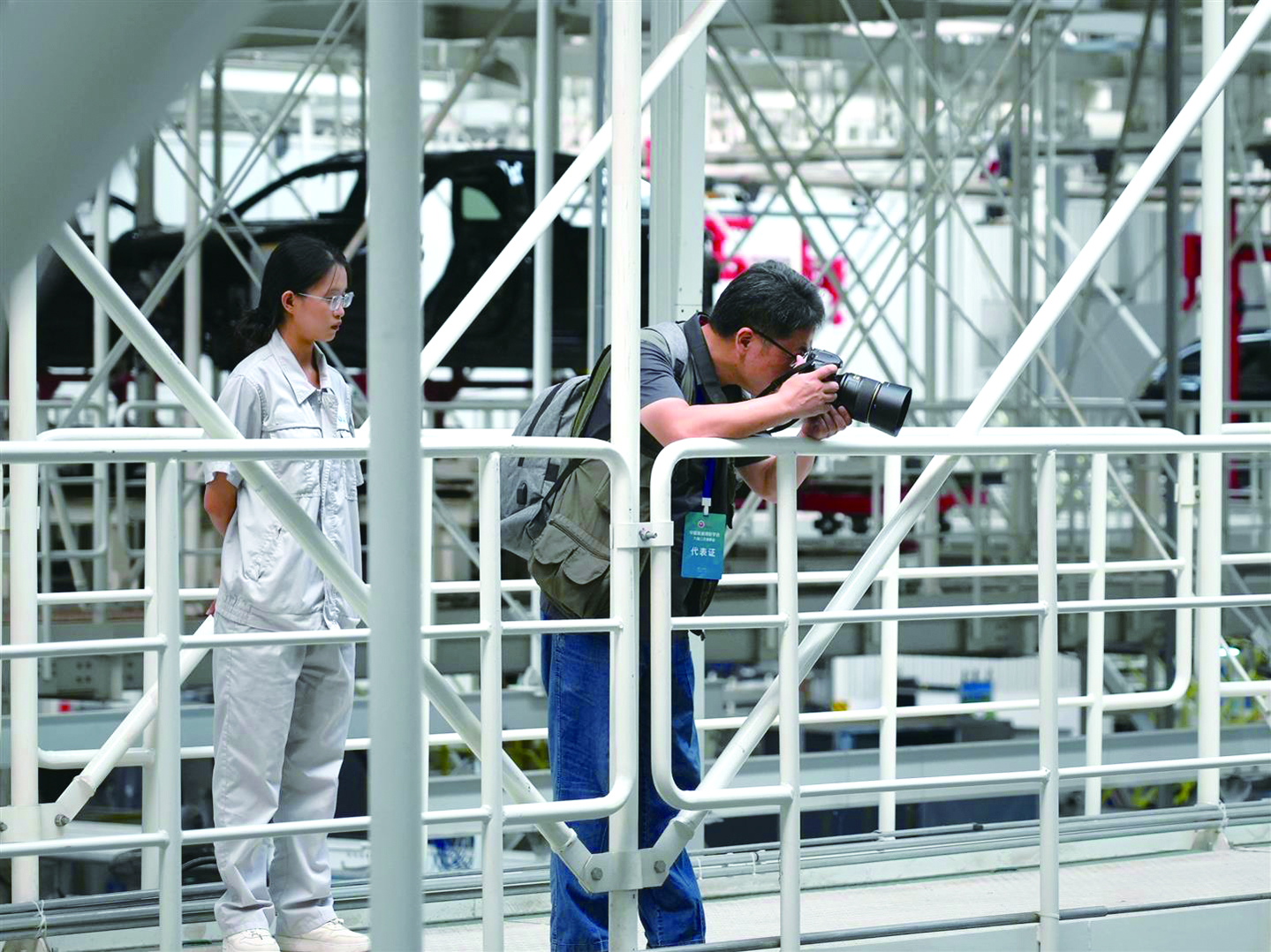 随后,采风团来到零跑汽车有限公司。在企业展厅,多款自主研发的新能源车型及核心技术组件引发关注,记者们聚焦车辆的智能座舱、自动驾驶辅助系统等创新配置,通过多角度拍摄展现“金华造”新能源汽车的科技魅力;在总装车间,大家沿着生产线记录车辆组装的关键环节,用影像讲述企业从“自主研发”到“量产交付”的发展故事。“从金华开发区的工业发展中,能清晰看到其强劲的未来潜力,不仅有高新企业持续落地扎根,更关键的是,这里跳出‘单一产品’局限,构建起汽车产业背后完整的产业链生态,让人觉得开发区大有希望。”温州日报社图片总监赵用说。
