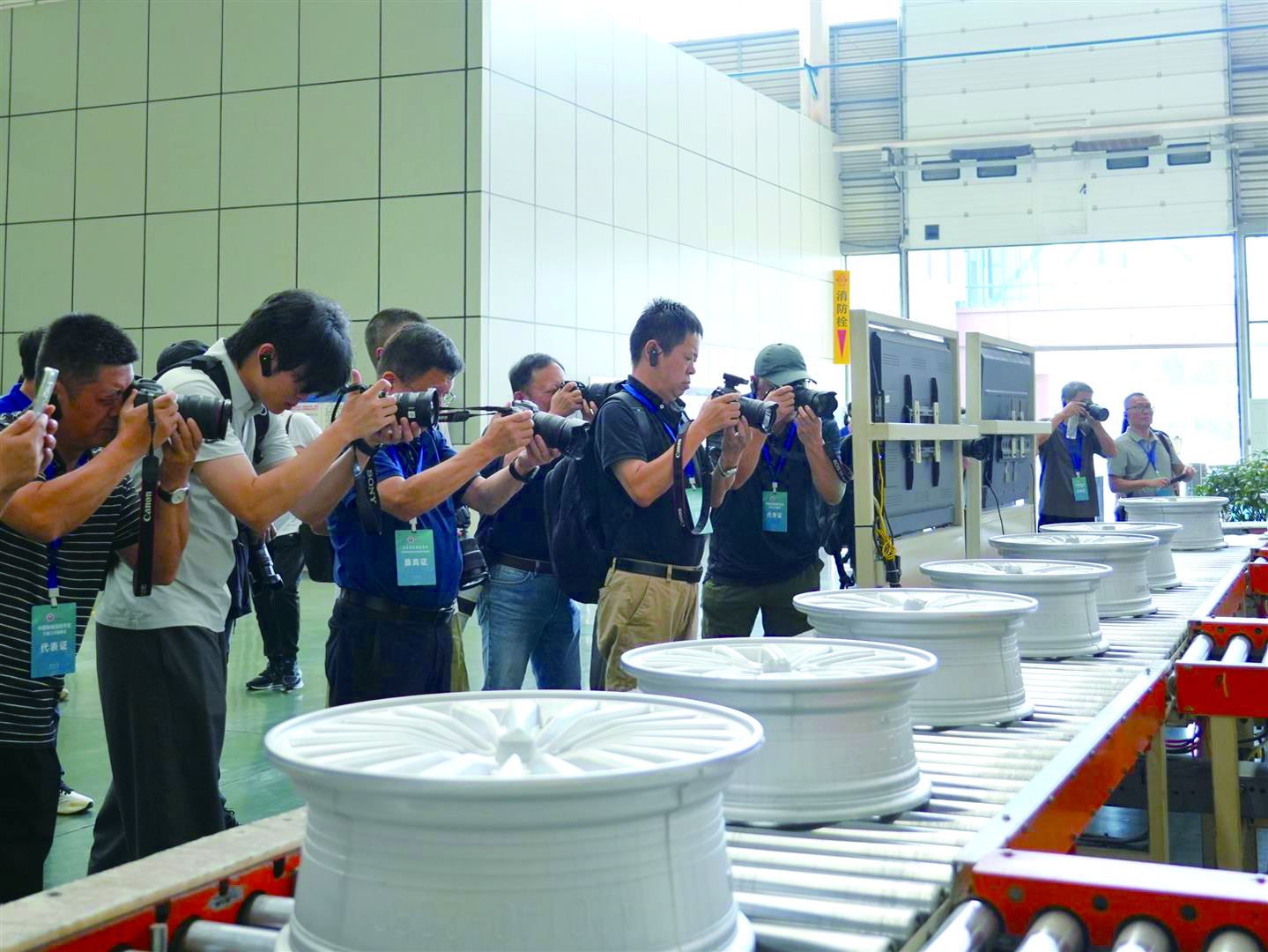 走进浙江今飞凯达轮毂股份有限公司生产车间,机械臂精准作业、智能流水线高效运转的画面引人驻足。采风团围绕企业在轻量化轮毂研发、绿色制造技术应用等领域的突破展开拍摄,通过镜头记录下传统制造向“智能制造”转型的升级轨迹。“从原材料到成品的全流程管控,不仅展现‘金华智造’的精度,更体现产业转型的深度。”天津市新闻摄影学会秘书长傅桂钢感慨。
