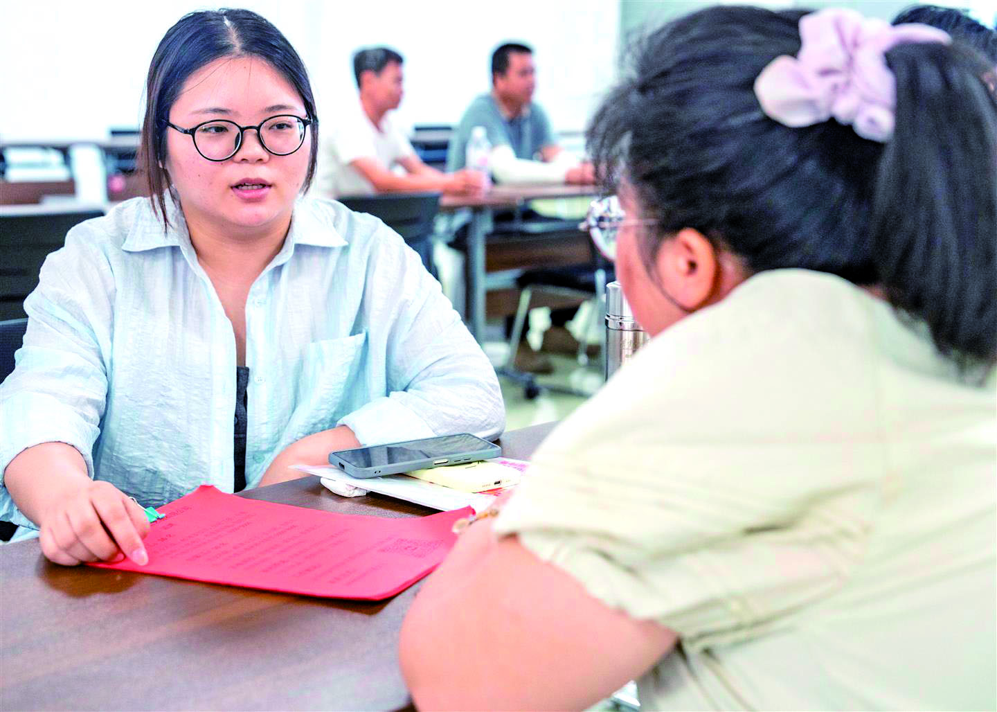 记者 傅俊 文/摄 近日,“群英荟萃 共谋未来”综合招聘会在婺城零工服务中心举行。来自酒店、新能源制造、家政服务、物流运输、网络科技等领域的32家企业进场设摊,吸引求职者前往洽谈应聘。