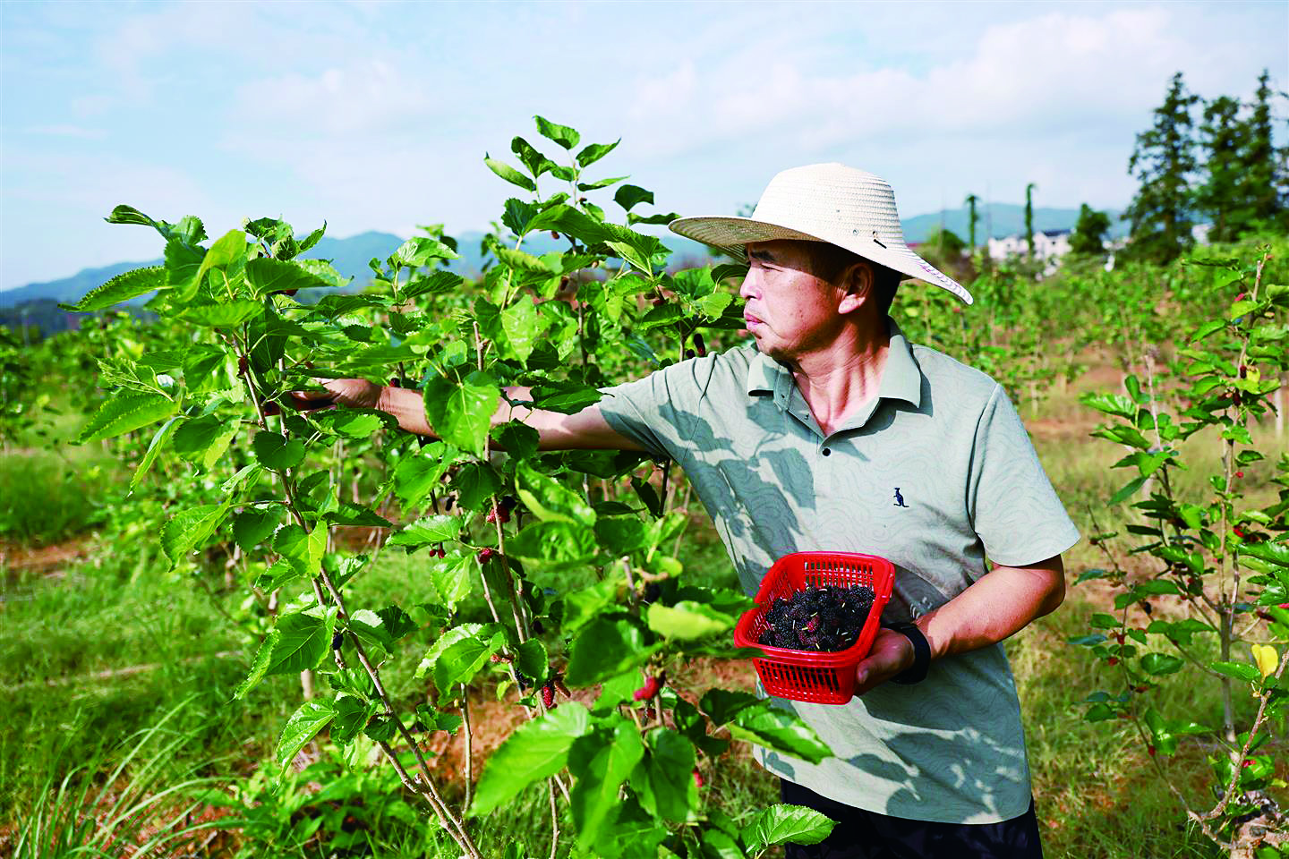 通讯员 胡扬辉 文/摄 连日来,东阳市画水镇君鑫家庭农场内,果农忙着采摘桑葚。 据了解,该农场培育的秋季桑葚采摘期在10月初到11月中旬,亩产量约800公斤。秋季大部分桑园无桑果上市,该农场的秋季桑葚在价格和销量上优势明显,具有良好的经济效益,前往采摘的市民络绎不绝。