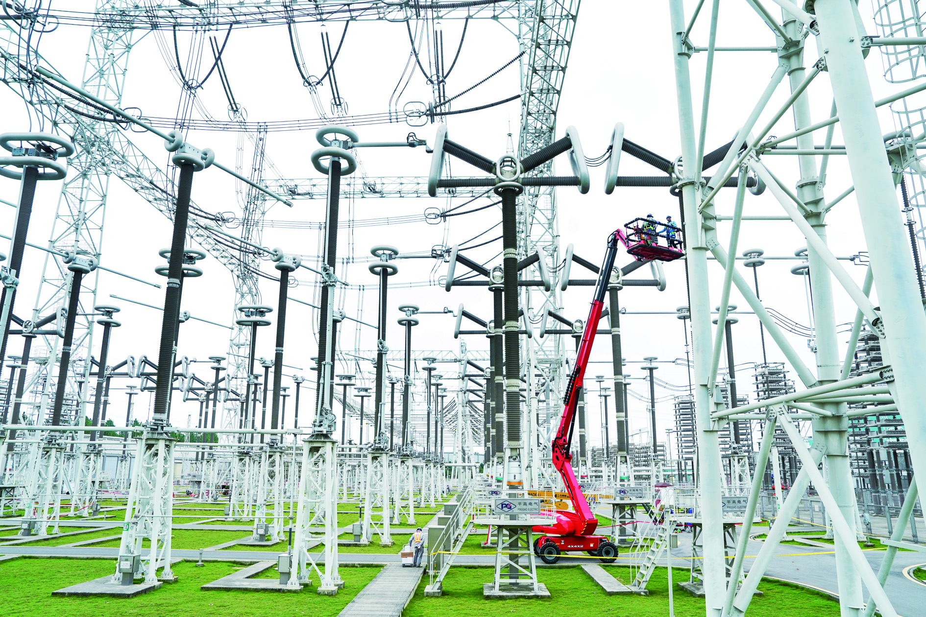 10月20日,安徽送变电工程有限公司检修人员在古泉换流站进行检修作业。 10月17日至10月23日,准东-皖南±1100千伏特高压直流输电工程的受端站——安徽宣城古泉换流站迎来年度停电检修。国网安徽电力的900余名电力检修人员对古泉换流站进行集中检修,总计开展检修任务4525项,为长三角地区今冬明春可靠用电提供保障。准东-皖南±1100千伏特高压直流输电工程起于新疆昌吉换流站,止于安徽古泉换流站,是目前世界上电压等级最高、输送距离最远、输送容量最大的输电工程。 新华社发