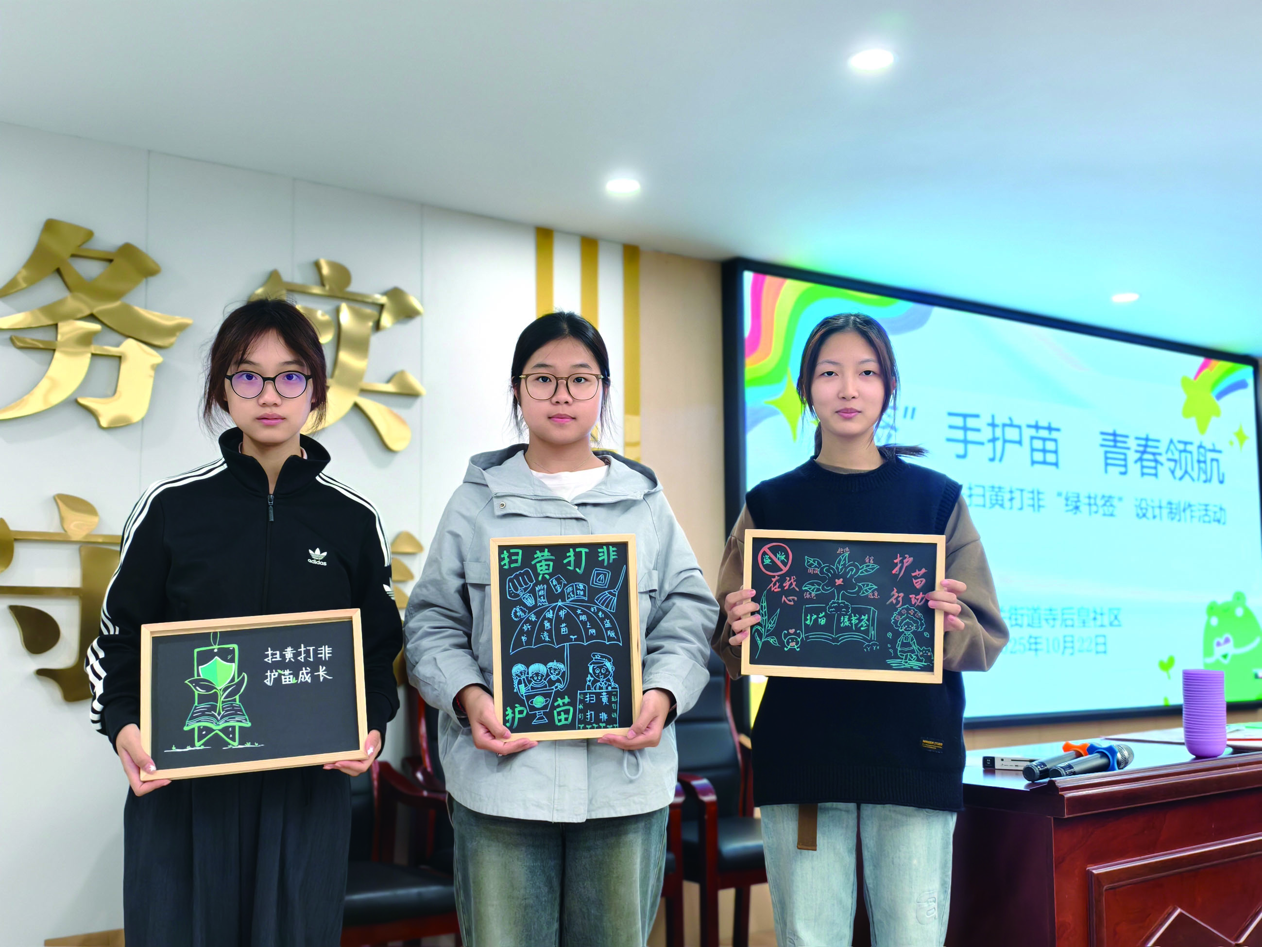 创作者是一群来自社区的文化志愿者和金华职业技术大学的学生。他们积极参与寺后皇社区党委举办的“护苗·绿书签”宣传品创作征集活动,不仅助力社区推进“扫黄打非·护苗”专项行动,营造健康清朗的文化环境,还把重阳文化元素融进作品,为“绿书签”行动注入敬老的温暖内涵。