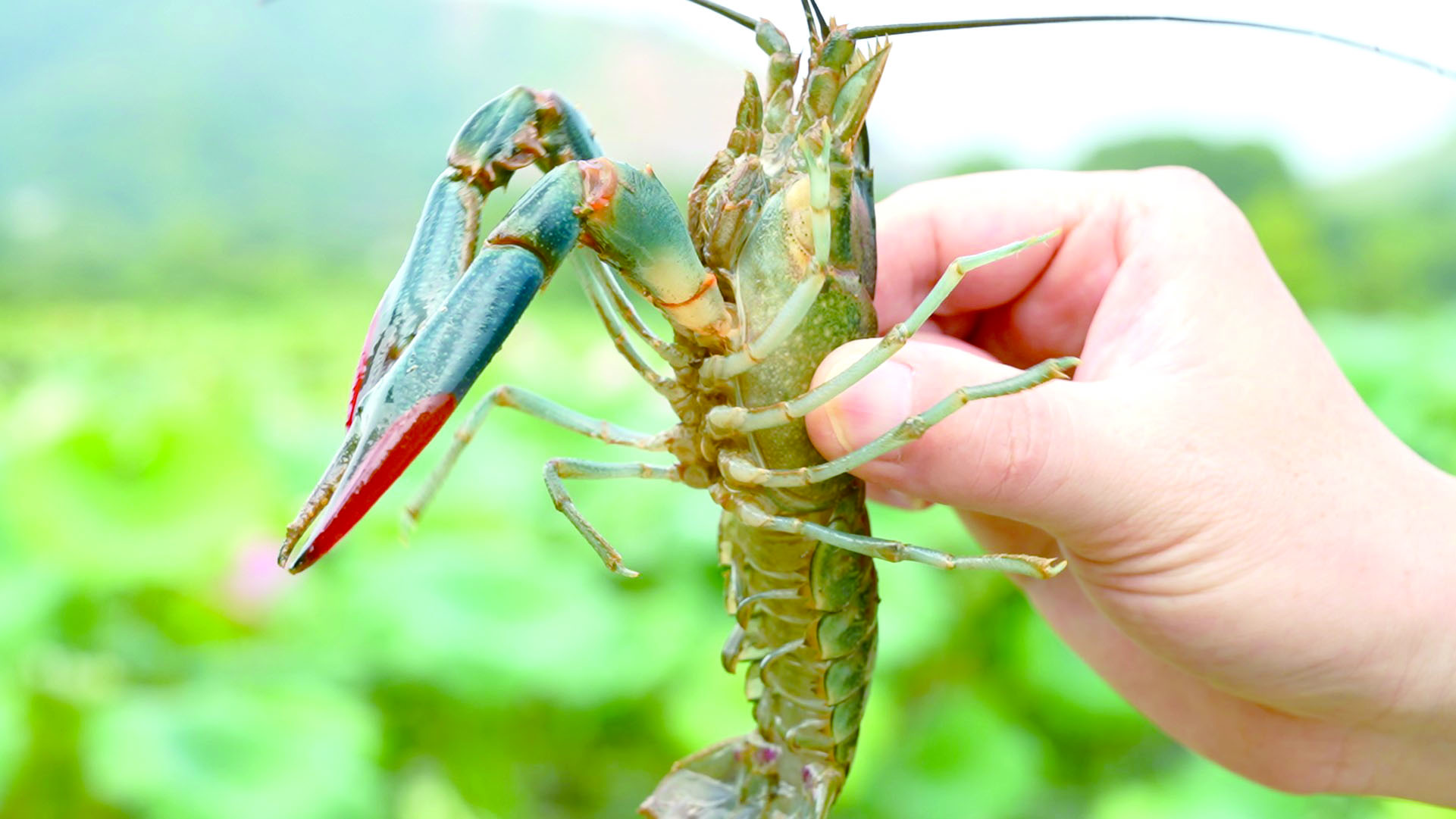 丰收的秘诀藏在这片莲田的特殊生态里。亭亭玉立的莲叶为龙虾撑起遮阳伞,掉落的花瓣、浮游生物成了虾的天然饲料;而龙虾排泄物又为莲田持续供肥。周小洪的“莲虾共生”模式为“一水两用、一田双收”的循环,让亩均效益实现翻番。他算了一笔账:基地现有“莲虾共生”面积30亩,水果莲每亩效益约5000元,每亩莲田投放800余尾虾苗,经过5至6个月的养殖期后,按目前的捕捞量估算,澳洲小青龙可再创7000元产值。