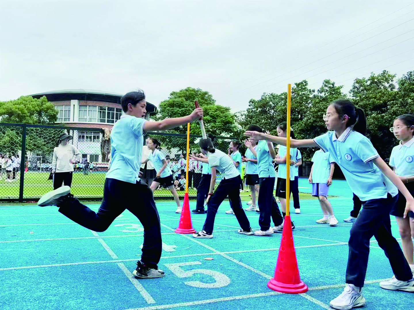 以往提起校运会,关注的焦点更多集中在跑道上争金夺银的运动员,而没有比赛项目的同学往往只能“靠边站”,要么无所事事,要么只能“打打酱油”,当个“吃瓜”看客。尤其到了中学阶段,面对学业压力,学生的参与积极性下降,家长也不太重视。随着义务教育阶段“每天一节体育课”逐步实施、对体育运动的不断强化,牵引出中小学体育系列改革,也带来教育教学理念的更新,反映在体育活动组织形式的创新上。