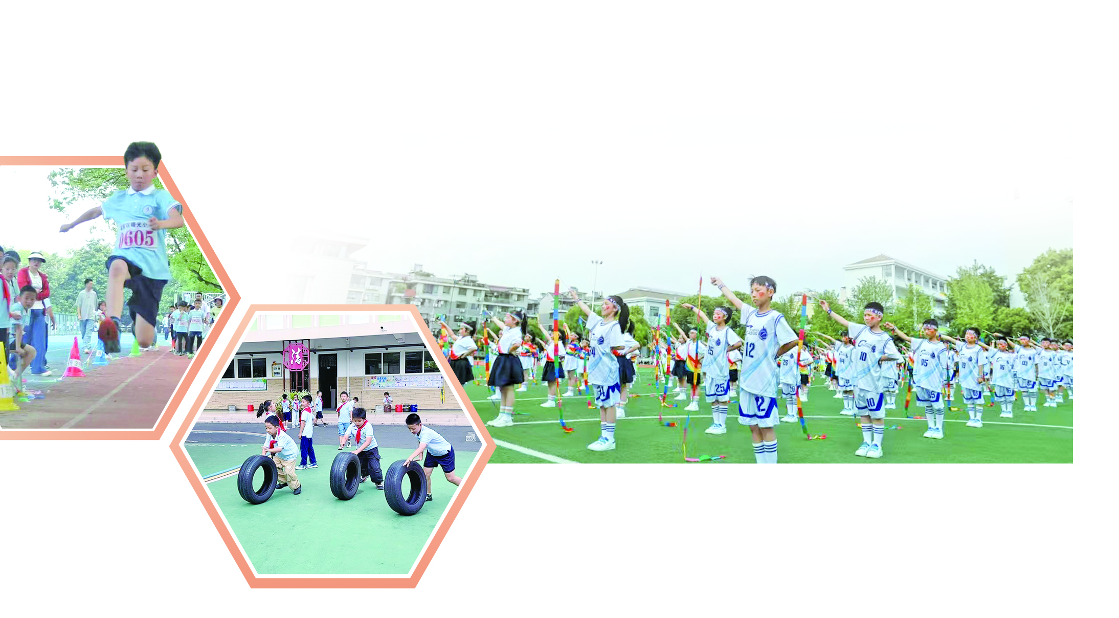 比如金华市宾虹小学,全员素质操已成为学校运动会的“灵魂项目”“集体名片”,它让运动从“个体竞技”变成“集体狂欢”。全员素质操是宾虹小学每日大课间的固定旋律,从二年级到五年级,依据孩子成长规律,量身设计篮球操、武术操、彩带操、啦啦操等“年级专属操种”,让运动覆盖每个孩子,让赛场拥抱每个身影。宾虹小学校长朱艳文表示,每日大课间的持续练习,为全员运动会积蓄了底气——不同于传统运动会“少数人竞技、多数人围观”,素质操比赛以班级为单位,要求人人参与、班班展示。比赛评分不唯“动作完美”,更注重全员整齐度与班级精神面貌,从队形编排到动作呈现,每个孩子都是主角,既展现日常锻炼成果,更比拼班级凝聚力。