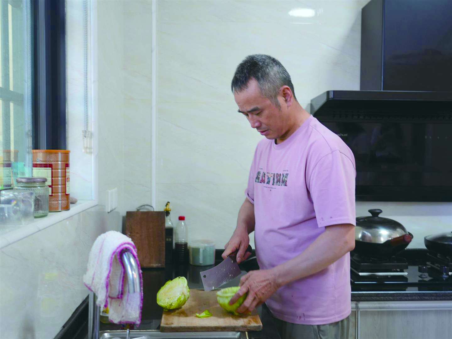 丁旭东早上起床准备早餐,给家人洗漱、喂饭,6时30分出发送妻子去医院透析,8时许赶去上班。“能多挣一点是一点,多一分钱,家人的治疗就多一分保障。”他说。中午下班去接透析完的妻子,然后回家做午饭,晚上帮家人擦洗、按摩,安顿好所有人后,还要清洗衣物、准备第二天的食材,他往往要到深夜才能躺下。