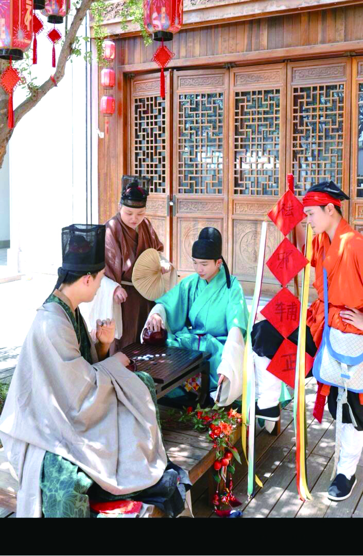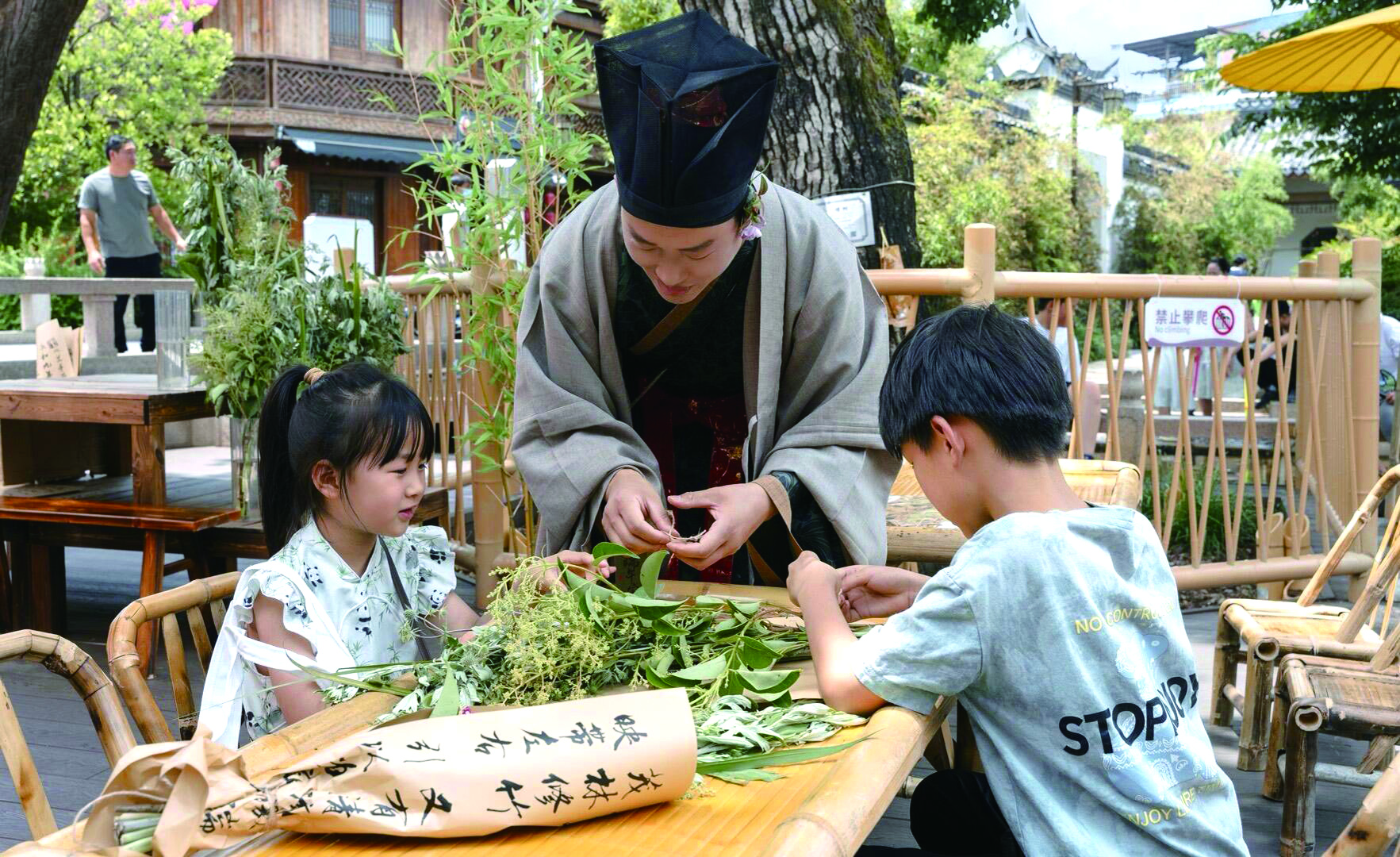 今年端午期间,佛堂在老街推出定制巡游剧《骁勇义乌兵·侠甲镇山河》。这是一场融合武术、古戏法和沉浸式互动的综合体验项目,角色扮演者会在蒲川水街随机“抓取”游客进行互动,游客在剧情演绎和知识竞答中既增加知识,又增加游玩的趣味性。整条老街根据“宗泽弈阵枰”“傅大士的茶桌”“宾王墨韵台”等场景进行布置,沉浸式的环境让拍照自带古风滤镜,吸引游客争相前来打卡。