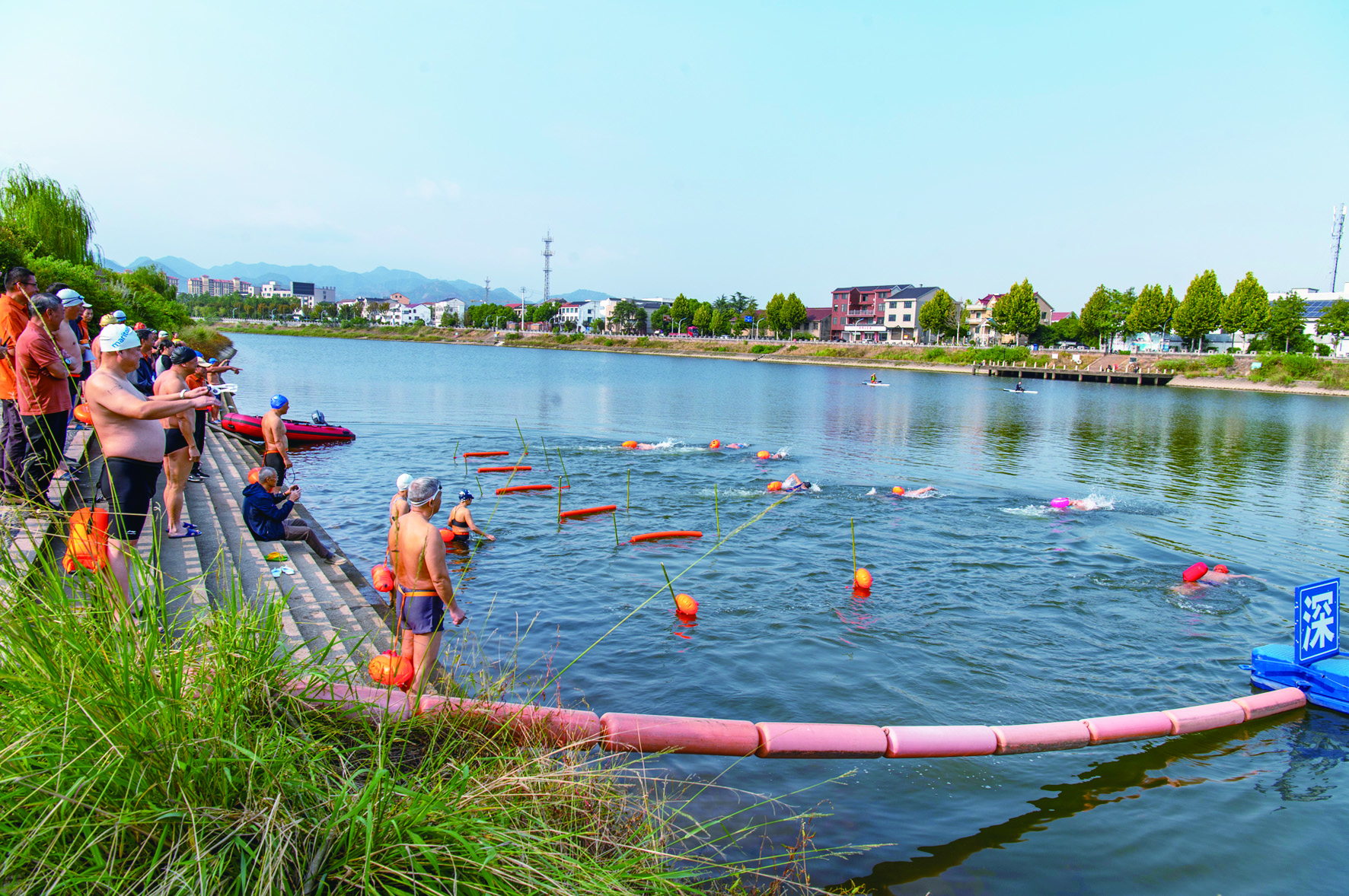 记者 胡肖飞 文/摄 昨日,俯瞰婺城区琅琊镇白沙溪水域,当地老年冬泳爱好者在清澈的水面上畅游(无人机照片)。 重阳节临近,金华市冬泳协会举办“迎重阳、启冬泳、白沙溪接力畅游”全民健身活动,吸引数百名老年冬泳爱好者参加,在白沙溪水域接力畅游,强身健体喜迎重阳佳节。
