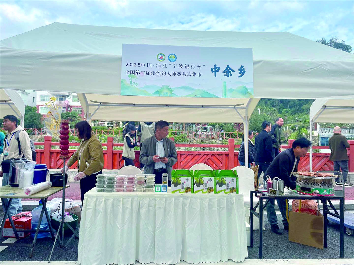 除了紧张激烈的比赛,赛场周边设置的特色展区也成为一大亮点。浦阳街道的黑米年糕、浦南街道的柠檬膏、黄宅镇的秋梨膏、郑宅镇的洛神酒等各乡镇特产集中亮相,吸引了选手和观众驻足选购,让人们在观赛之余品尝到浦江地方特色风味。