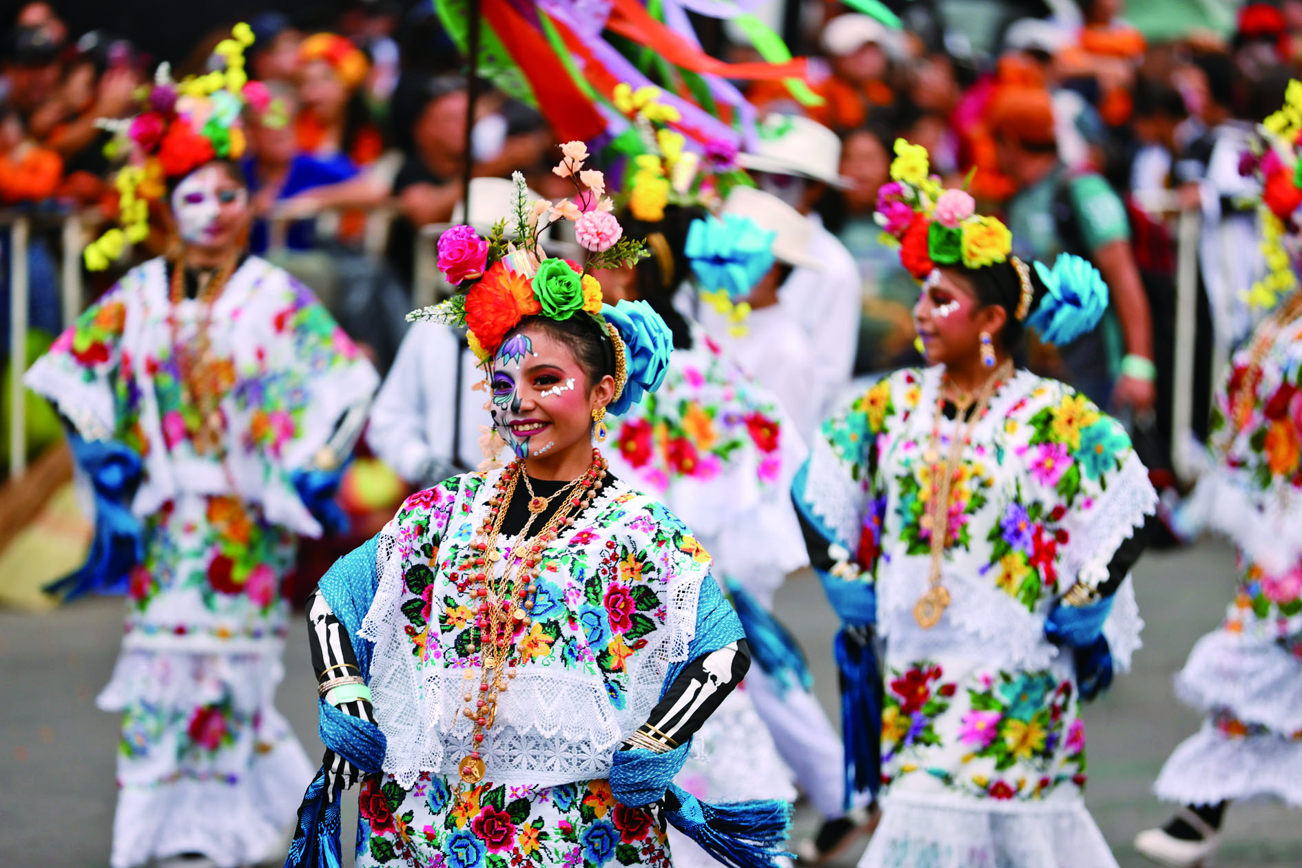 11月1日,在墨西哥首都墨西哥城,演员参加亡灵节游行。 每年的11月1日和2日是墨西哥的传统节日亡灵节。亡灵节是墨西哥最隆重、最独特的节日之一,大批民众走上街头,庆祝这个崇敬生命的节日。2003年,联合国教科文组织将墨西哥亡灵节列入非物质文化遗产。 新华社发