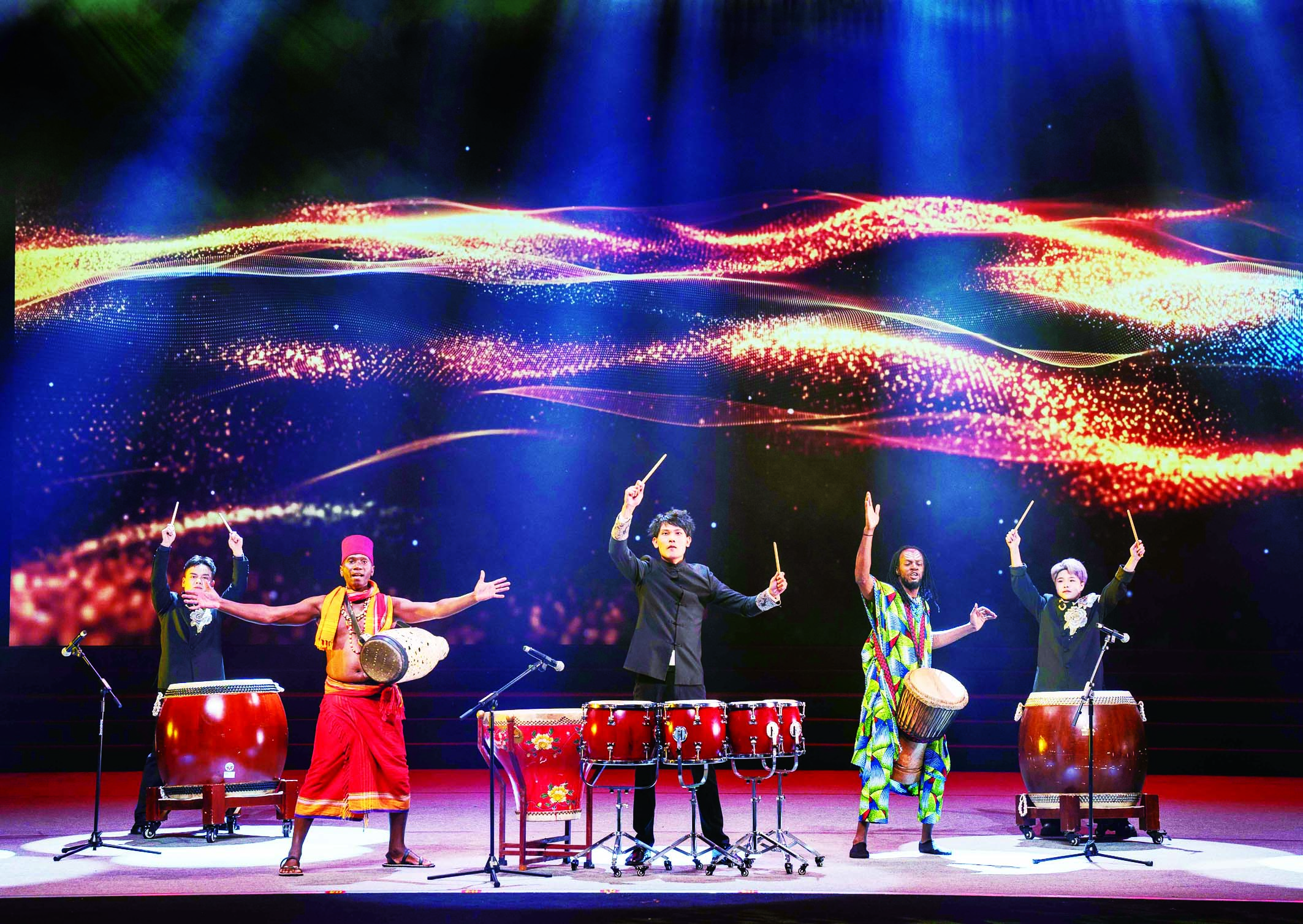整场演出带给观众视觉和听觉上的极致享受。由浙江婺剧艺术研究院与肯尼亚博马斯哈拉比舞团、遇身行阿蓓舞团同台演绎的节目《鼓韵迎客来》赢得了满堂喝彩。演员们击鼓迎宾、以鼓会友,让中国婺剧的铿锵鼓点与非洲舞蹈的奔放律动交融共鸣。