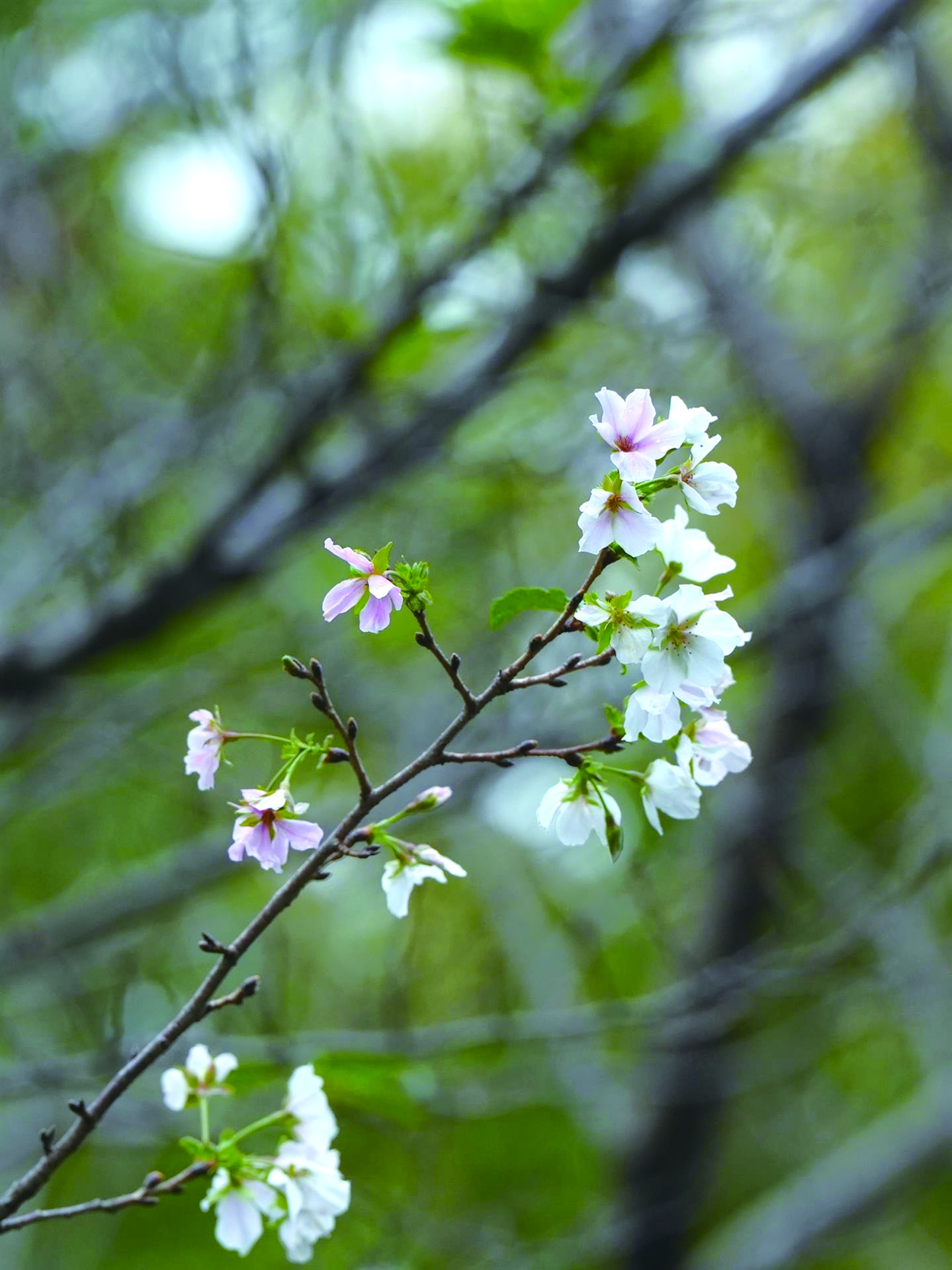 昨天,在开发区国际友城公园,本该春日盛放的樱花竟与金桂争艳,在少数枝头绽出零星花朵。