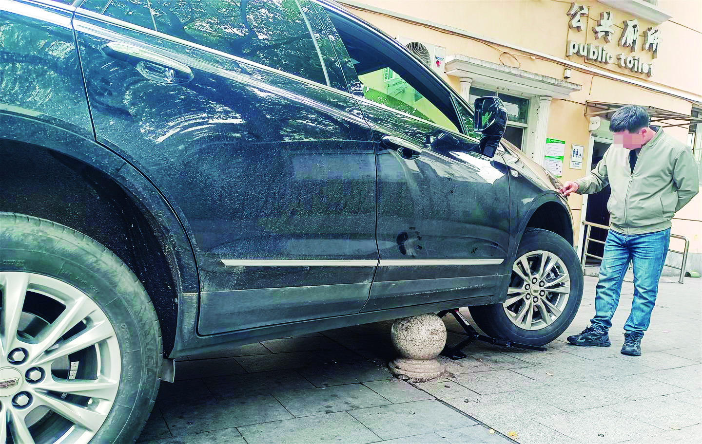 记者 李建林 文/摄 11月5日,在市区婺州街上,一辆私家车“骑”在隔离墩上,进退两难。过往的行人见状不禁纳闷,这是怎么开车的呀!车主说,他在人行道上拐弯时,一时未注意到路上的隔离墩,车辆因此被卡住。